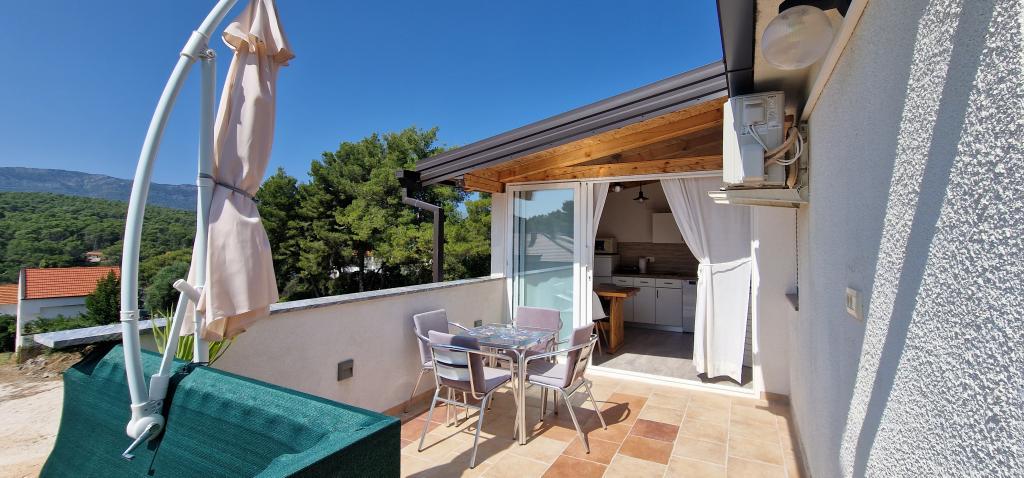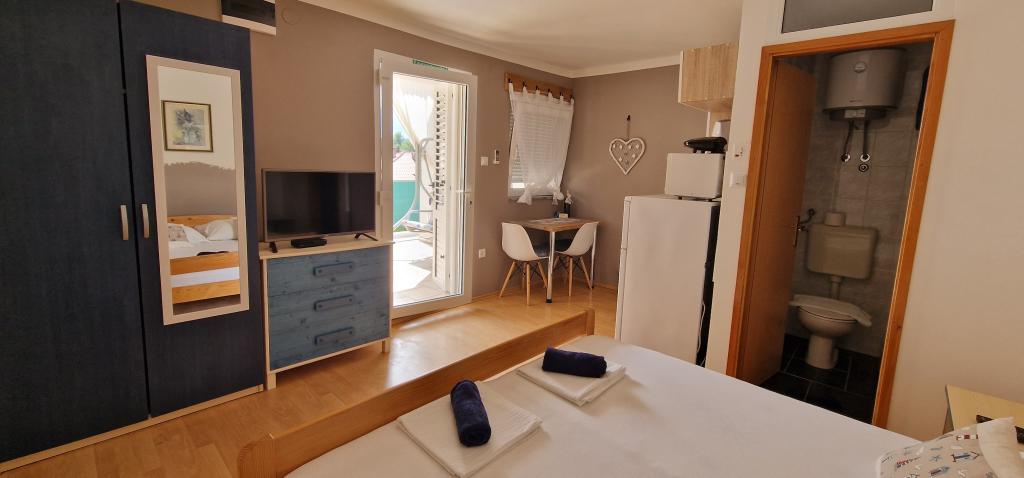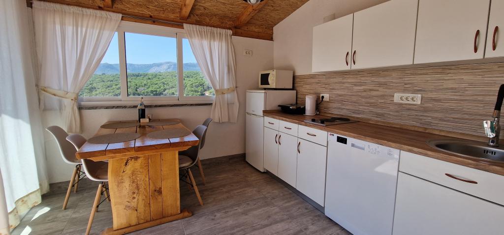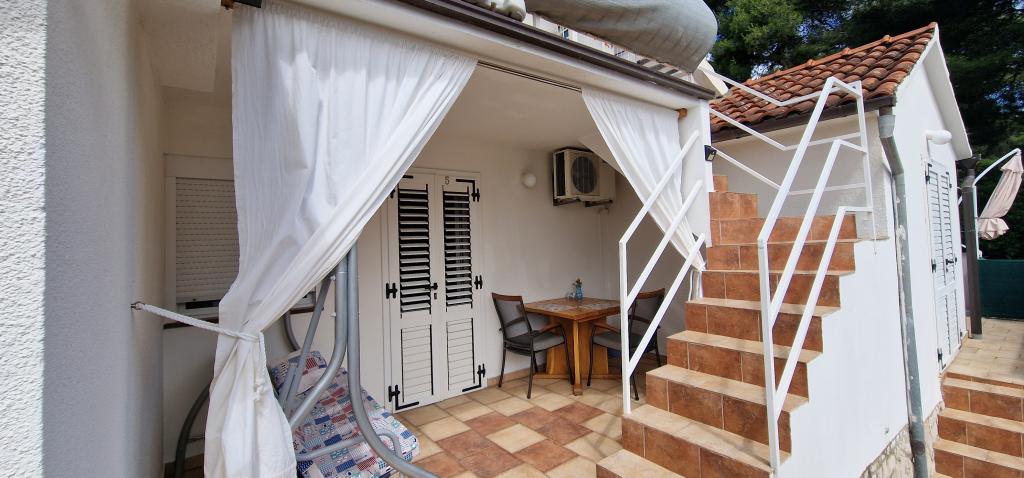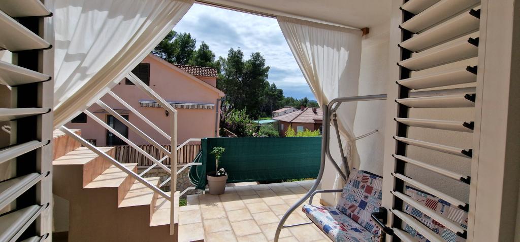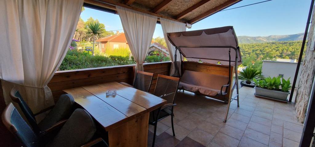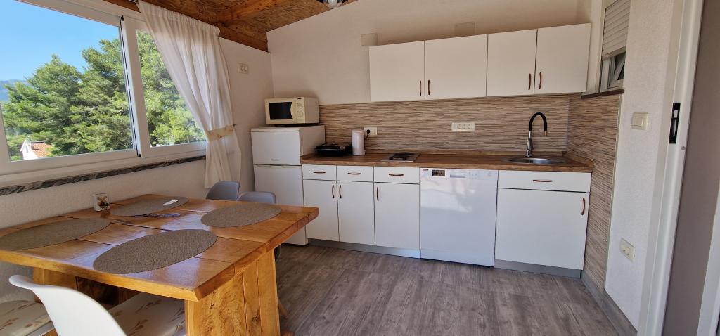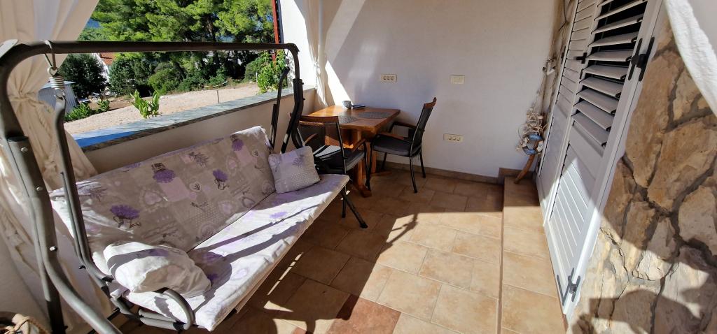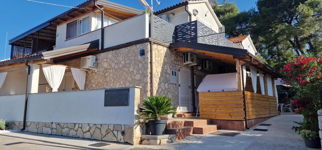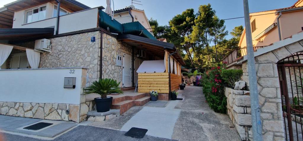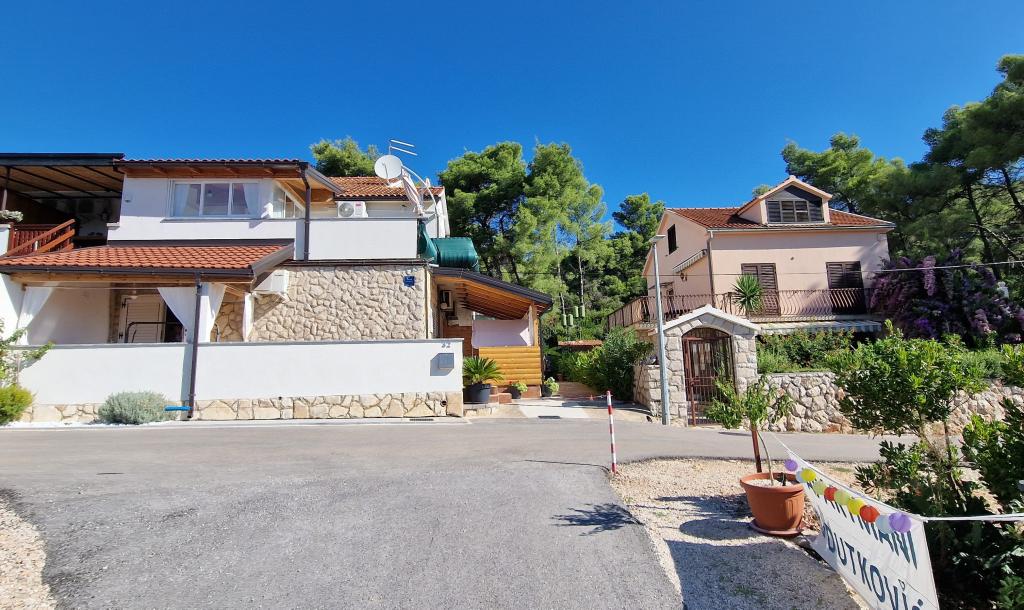 Naša hiša se nahaja na samem začetku polotoka v vasi Zaglav, tako da je morje na dveh straneh, tj. prvi zaliv je oddaljen že 100 m, medtem ko je na drugi strani nekoliko večja razdalja (približno 500 m). Hiša je sestavljena iz šestih apartmajev različnih velikosti (za 2-4 osebe). Vsak apartma ima svojo kopalnico, kuhinjo in teraso. Pred hišo je parkirišče samo za goste naše hiše. Gostje lahko uporabljajo zunanji žar (električni). Razdalja od hiše do centra Vrboske, tj. do trgovine, pošte, je približno 900 m. Cesta do centra in glavne mestne plaže Soline poteka ob morski obali. Razdalja od avtobusne postaje je 900 m. Razdalja od trajektnega pristanišča je 10 km (Stari grad). Razdalja od lekarne in reševalnega vozila je 6 km (Jelsa), kjer je tudi nujna medicinska pomoč. Razdalja od bencinske črpalke je 5 km. Oskrba z vodo: lokalni vodovod Vrsta plaže: peščena, skalnata, prodnata, večji kamni in betonske plošče Dostop z osebnimi vozili do objekta: dober