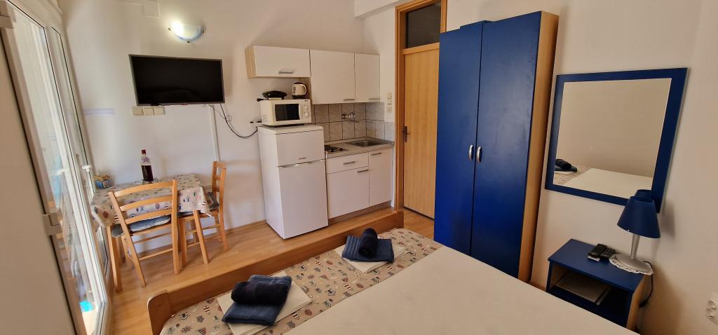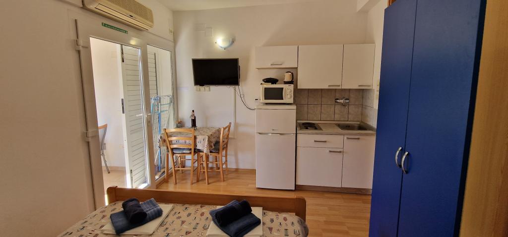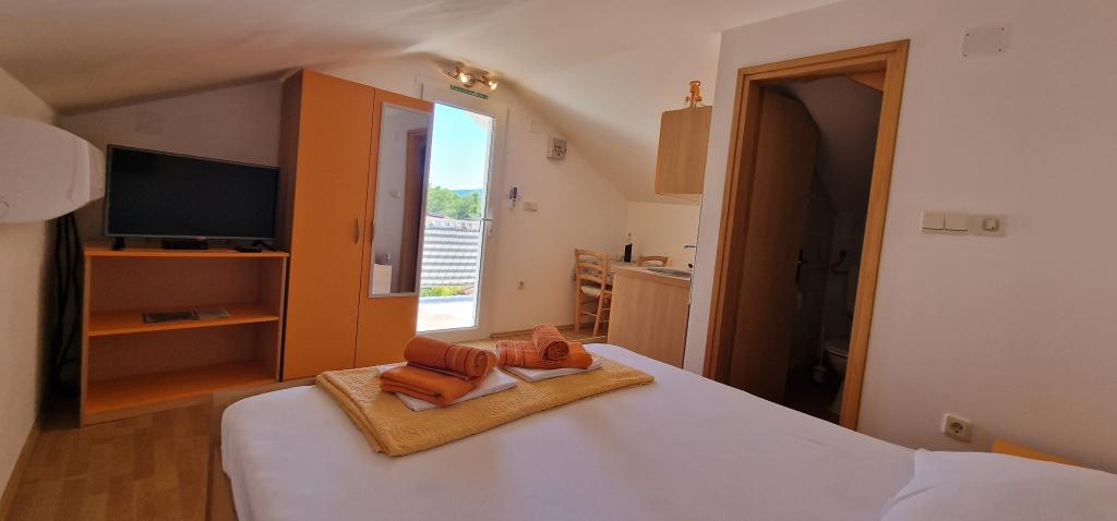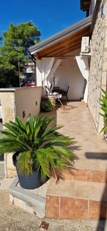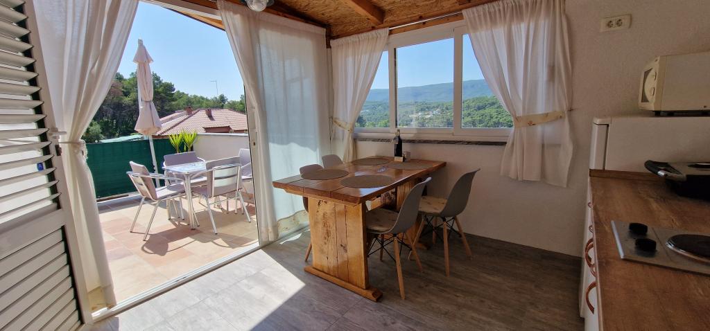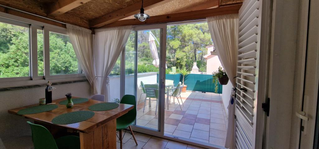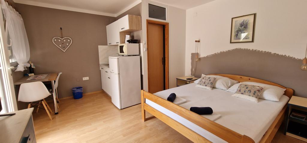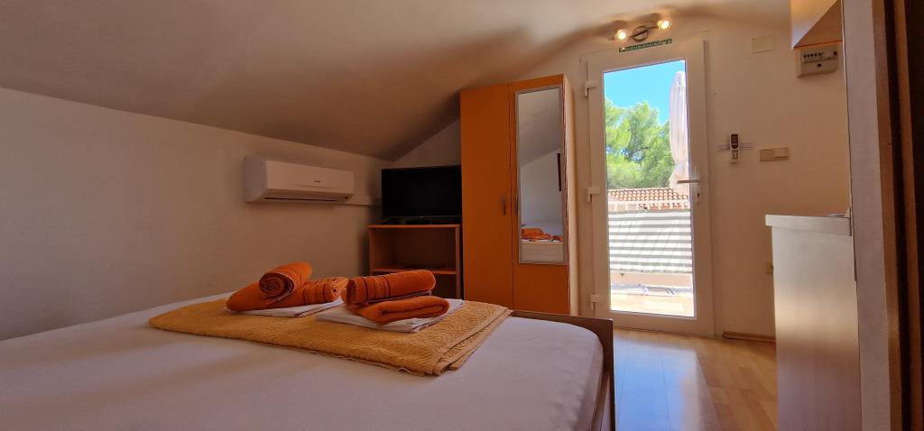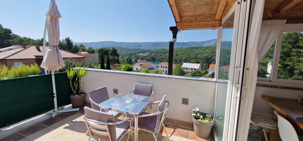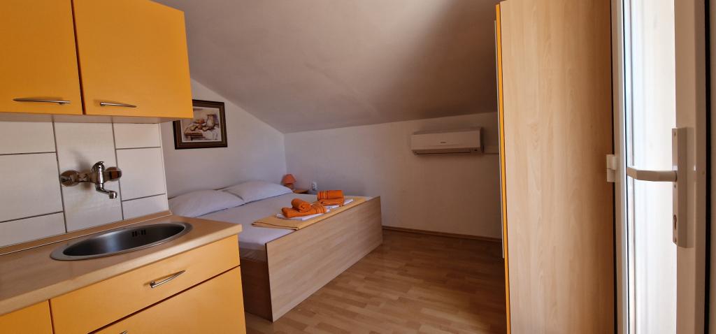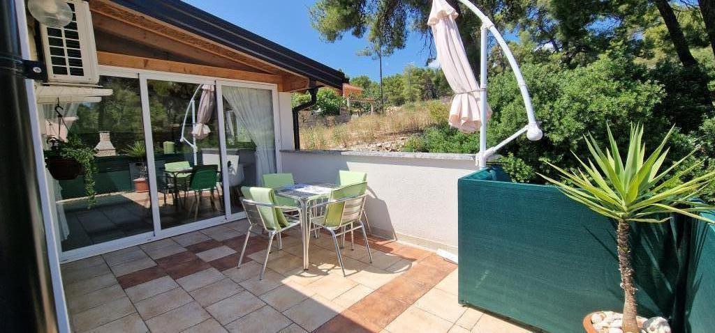 Naša hiša se nahaja na samem začetku polotoka v vasi Zaglav, tako da je morje na dveh straneh, tj. prvi zaliv je oddaljen že 100 m, medtem ko je na drugi strani nekoliko večja razdalja (približno 500 m). Hiša je sestavljena iz šestih apartmajev različnih velikosti (za 2-4 osebe). Vsak apartma ima svojo kopalnico, kuhinjo in teraso. Pred hišo je parkirišče samo za goste naše hiše. Gostje lahko uporabljajo zunanji žar (električni). Razdalja od hiše do centra Vrboske, tj. do trgovine, pošte, je približno 900 m. Cesta do centra in glavne mestne plaže Soline poteka ob morski obali. Razdalja od avtobusne postaje je 900 m. Razdalja od trajektnega pristanišča je 10 km (Stari grad). Razdalja od lekarne in reševalnega vozila je 6 km (Jelsa), kjer je tudi nujna medicinska pomoč. Razdalja od bencinske črpalke je 5 km. Oskrba z vodo: lokalni vodovod Vrsta plaže: peščena, skalnata, prodnata, večji kamni in betonske plošče Dostop z osebnimi vozili do objekta: dober