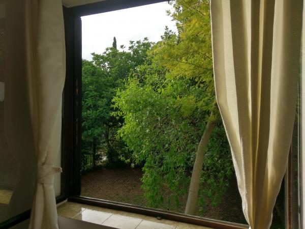 V obeh studiih smo ostali 2 tedna junija/julija. Bili smo 4 ljudje. Vsak studio je imel spalnico z 2 posteljama, klimo in mrežo proti muham na oknih. Kuhinja je bila majhna, vendar je imela vse, kar potrebujete. Hladilnik, plinski štedilnik, pomivalno korito in posoda. Zunaj je tudi majhna predsoba. Miza in stoli so bili pred studiem. Nakupujete lahko v mestu ali v velikem supermarketu na vhodu v mesto. Lahko parkirate pri hiši. Brisače so bile v kopalnici/stranišču. Nič ni manjkalo. Televizije nismo pogrešali. Od prenočišča do trate na plaži potrebujete 3,5 minute. Na plaži je vedno prostor. Na voljo so tuši, stranišča, zelenica, gozd, restavracija in bar. Z gazdaričino hčerko sva imela zelo dober stik, vse je uredila. Z njo smo lahko vse razjasnili po elektronski pošti ali telefonu. Še enkrat ji hvala. Res smo se počutili zelo udobno.