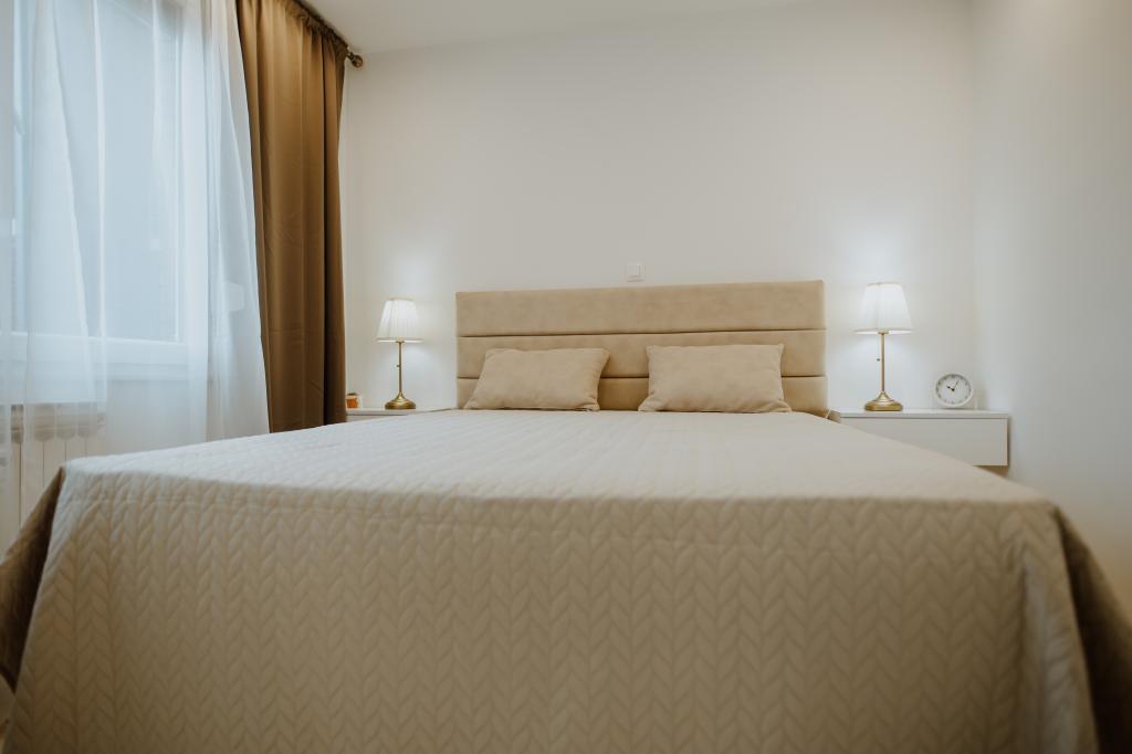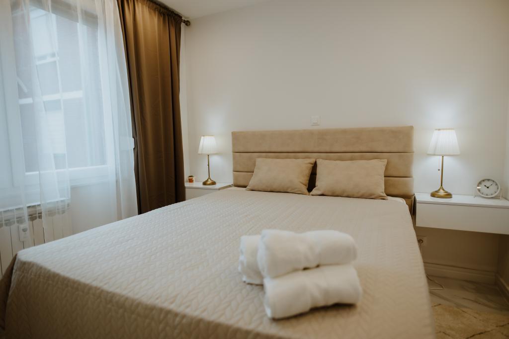 Želimo vam iskreno dobrodošlico v mestu Vukovar in v našem luksuzno urejenem apartmaju z upanjem, da boste Vukovar zapustili z nepozabnimi vtisi! Apartma je velik 59 m2, je kategoriziran s 4 zvezdicami in je opremljen s pohištvom po meri, velikim TV z ravnim zaslonom in brezplačnim Wi-Fi, klimatiziran, z veliko ložo, ki se lahko zapre z roleto z daljinski upravljalnik po potrebi in vsa bela tehnika (pralni stroj pralni stroj, sušilni stroj, pomivalni stroj, hladilnik z zamrzovalnikom, pečica, vgradna kuhalna plošča). Apartma nudi udobno namestitev za največ 4 osebe z vrhunskim udobjem in opremo, za goste apartmaja pa je zagotovljeno brezplačno parkirišče. Iz spalnice je pogled na reko Vuko, simbol Vukovarja - Vodni stolp in zvonike vukovarskih cerkva. V bližini objekta se nahajajo številni športni objekti, promenada ob reki Vuki, ki vodi do sotočja Vuke v Donavo, od centra mesta je oddaljena 550 m in v neposredni bližini vseh mestnih znamenitosti in ustanov. . Prijetno bivanje!