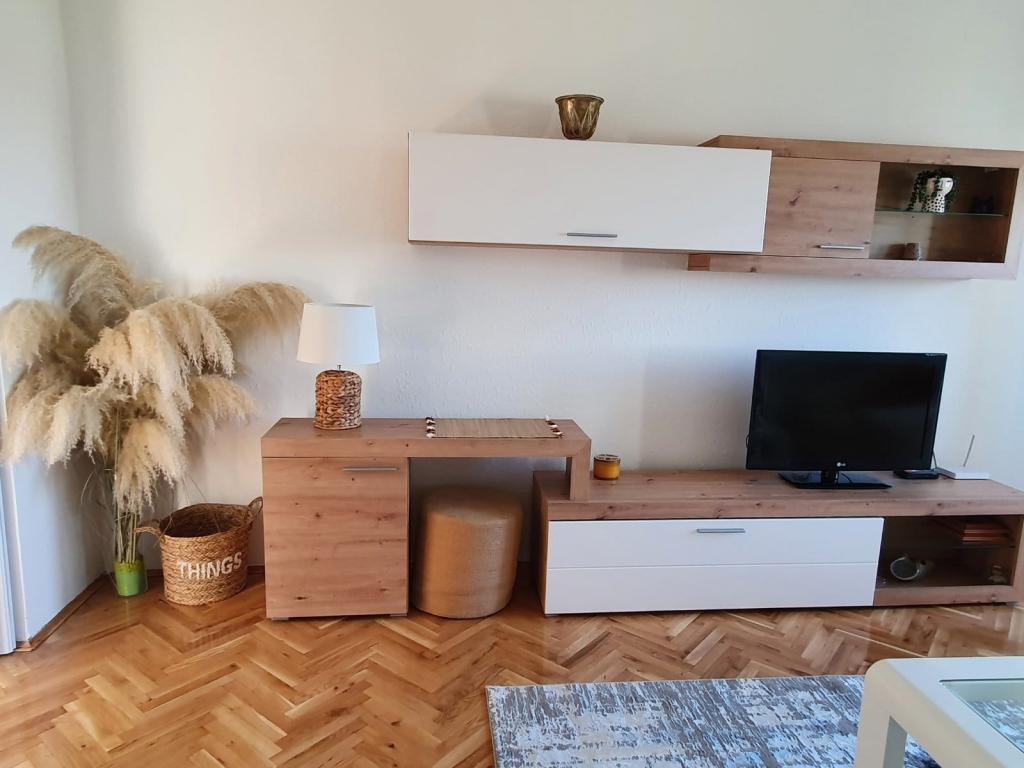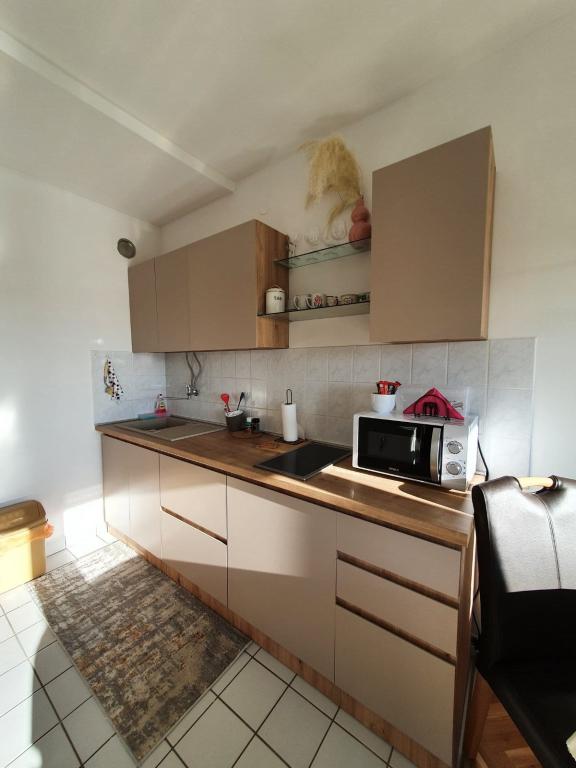 Oddamo lepo stanovanje sestavljeno iz: spalnice, dnevne sobe, kuhinje z jedilnico, hodnika in kopalnice. Površina 56 m2 Nahaja se v stanovanjski stavbi v 4. nadstropju (stavba ima 2 dvigali) - Vsebuje 2 balkona s čudovitim pogledom na reko Donavo. Stanovanje je na voljo za najem vse leto in ima centralno ogrevanje. Nahaja se v središču mesta ob gradu Eltz. Parkirišče pred stavbo. Ponudba: čudovita promenada ob Donavi v bližini stavbe, trgovski center Golubica (2 minuti peš) in vse ostale kavarne in restavracije 5 minut peš. Apartma ima brezplačen internet s hitrostjo 10mb/s.