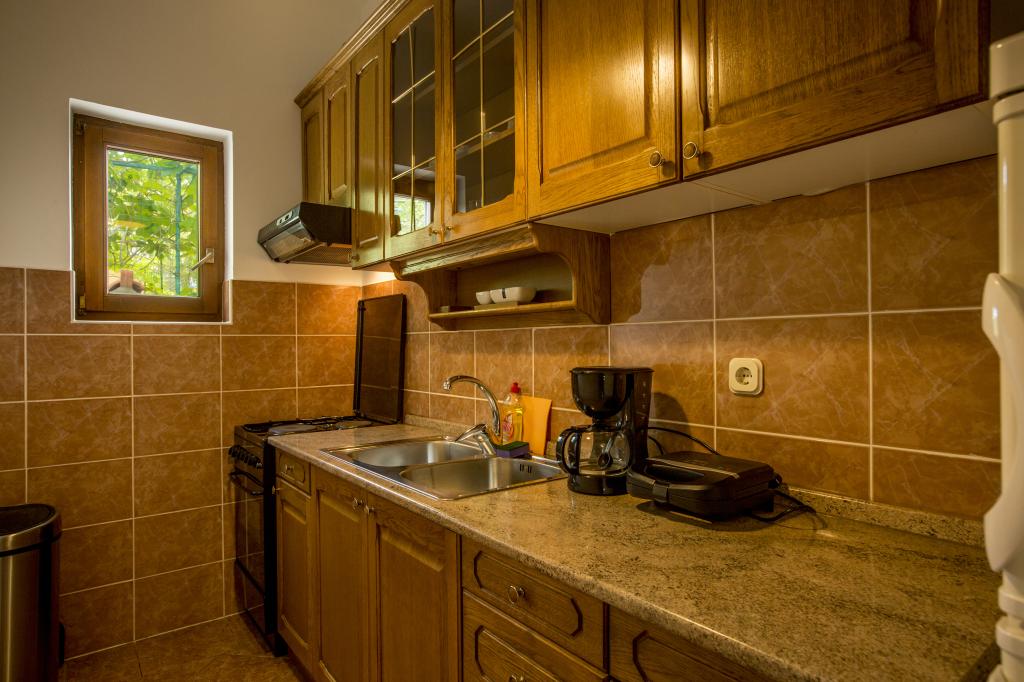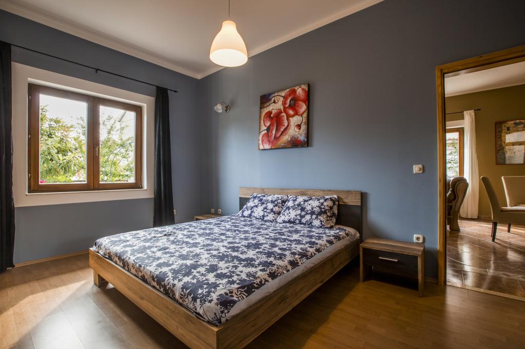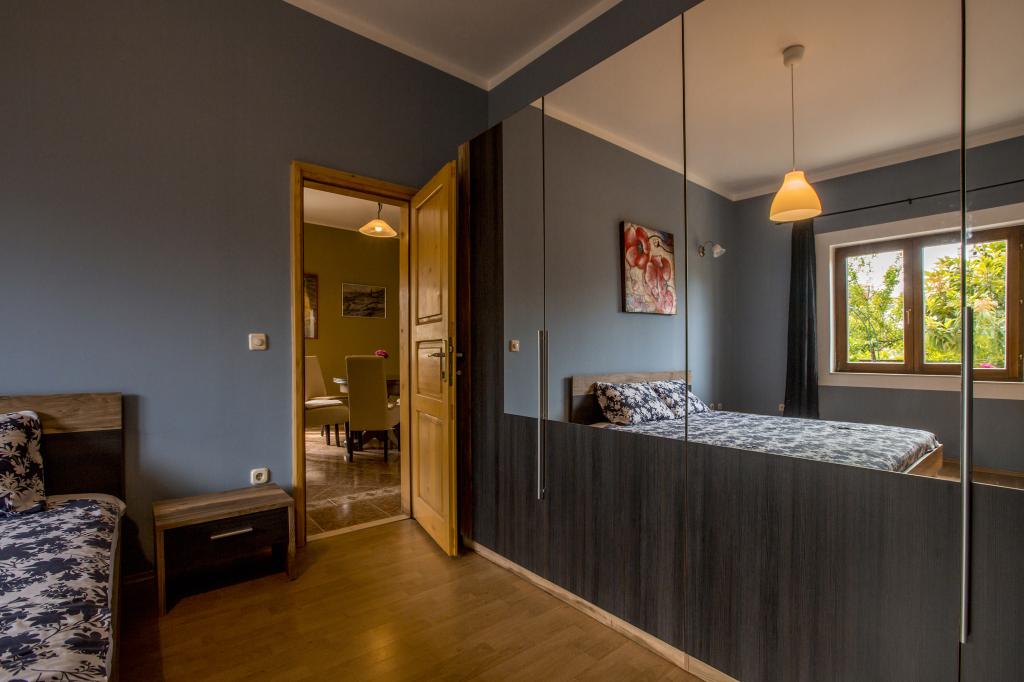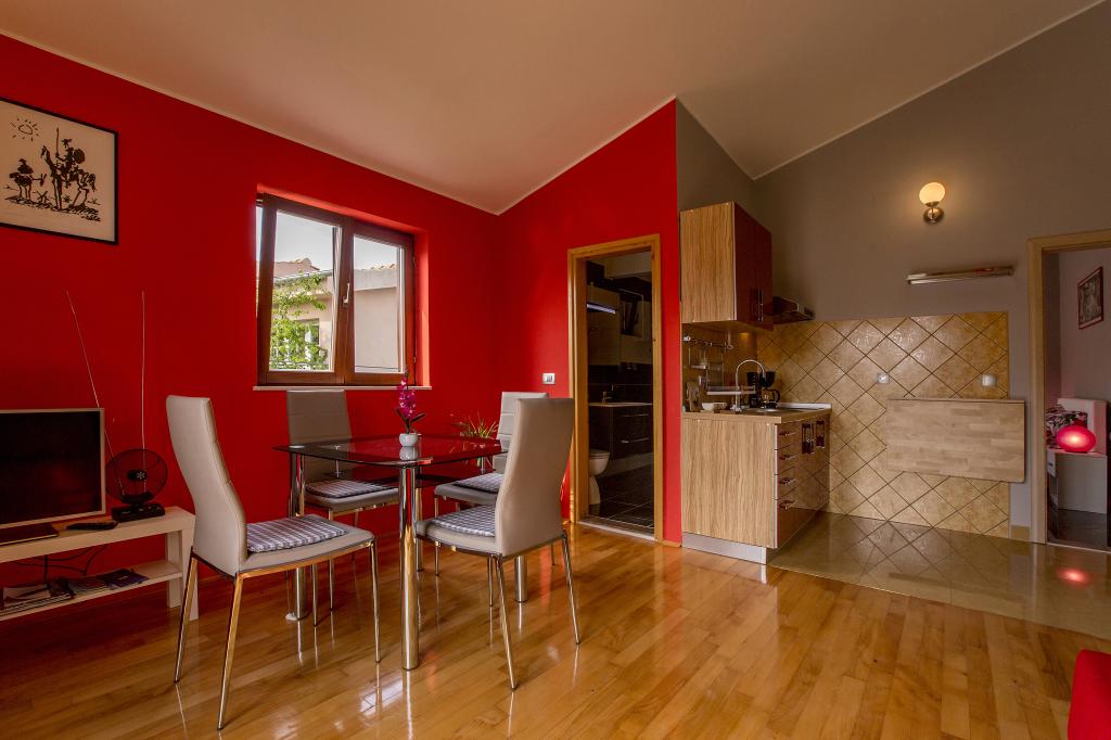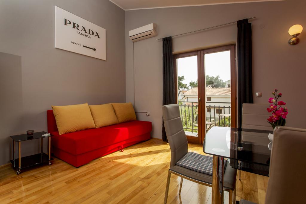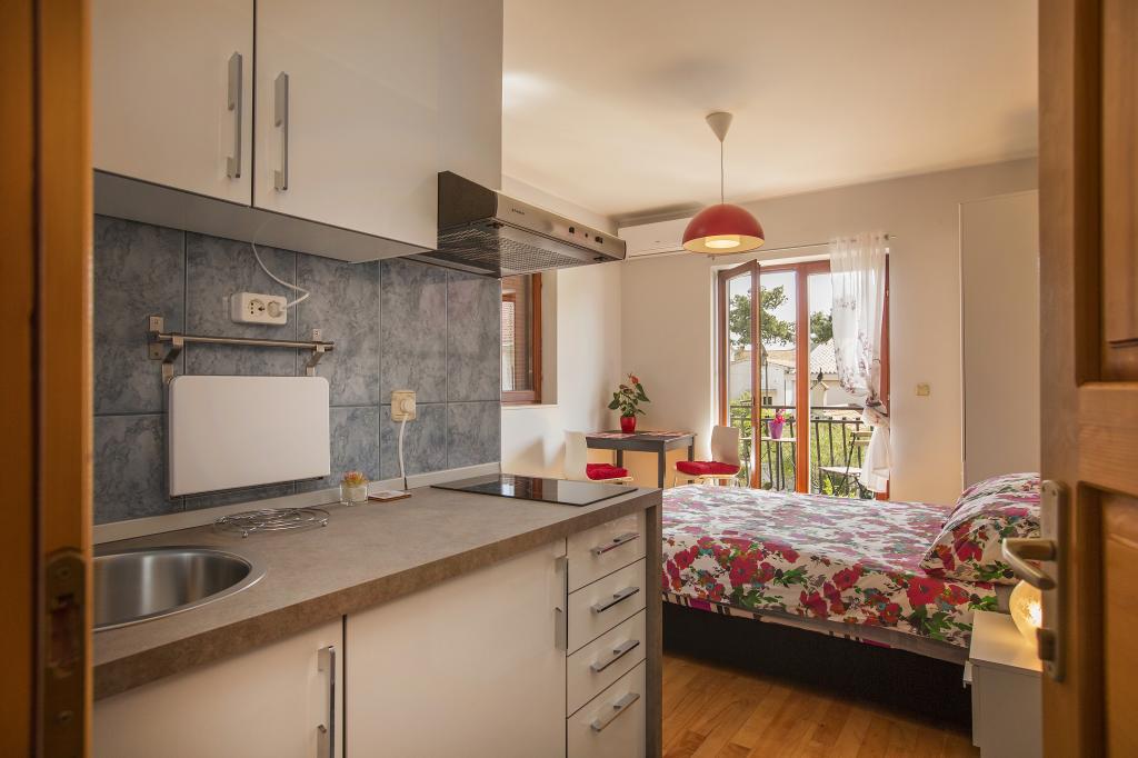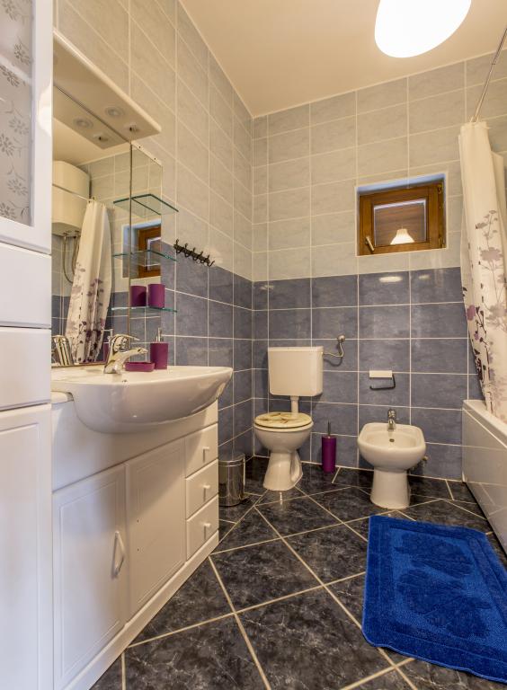 Popolnoma in moderno opremljeni apartmaji 80 m od morja. Apartma A1 (78 m2) ima dve spalnici, kuhinjo, kopalnico in veliko dnevno sobo z jedilnico in dodatnim ležiščem. Primerno za do 6 oseb, klimatizirano, gostom pa so na voljo SAT TV, WiFi internet, aparat za kavo, mikrovalovna pečica, opekač kruha in sef. Apartma A2 (41 m2) ima eno spalnico in prostor s kuhinjo, jedilno mizo in dodatnim ležiščem. Primerna je za do 4 osebe, je klimatizirana, ima dva balkona, gostom pa so na voljo SAT TV, WiFi internet, aparat za kavo, mikrovalovna pečica, opekač kruha in sef. Studio A3 je primeren za do 2 osebi, ima balkon, je klimatiziran, gostom pa so na voljo SAT TV, WiFi internet, aparat za kavo, mikrovalovna pečica, opekač kruha in sef. Možen je tudi najem celotne hiše, ki lahko sprejme do 12 oseb.