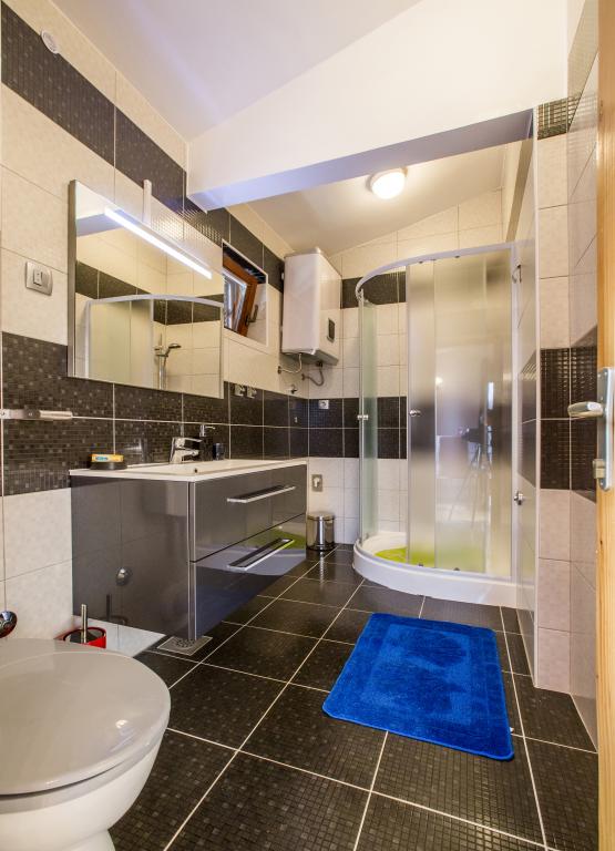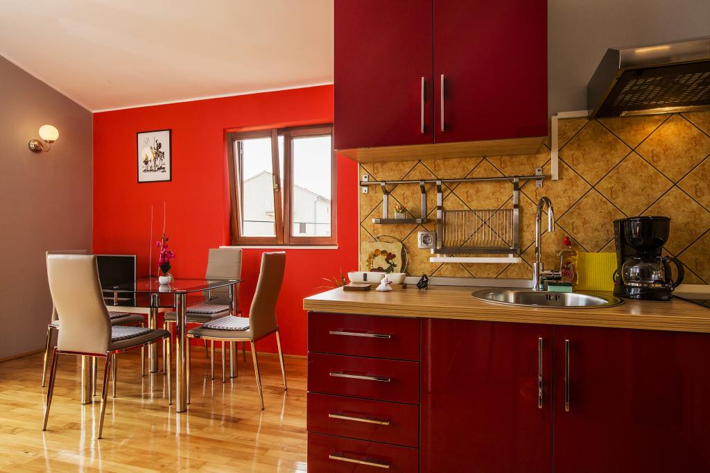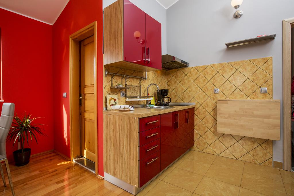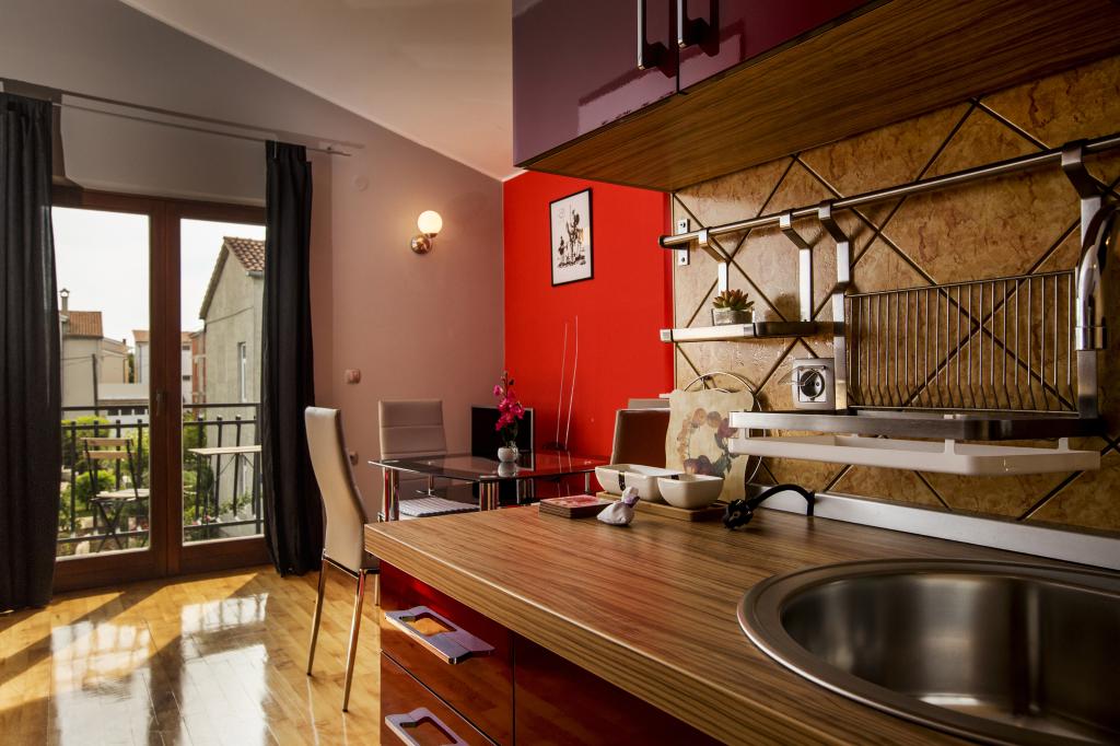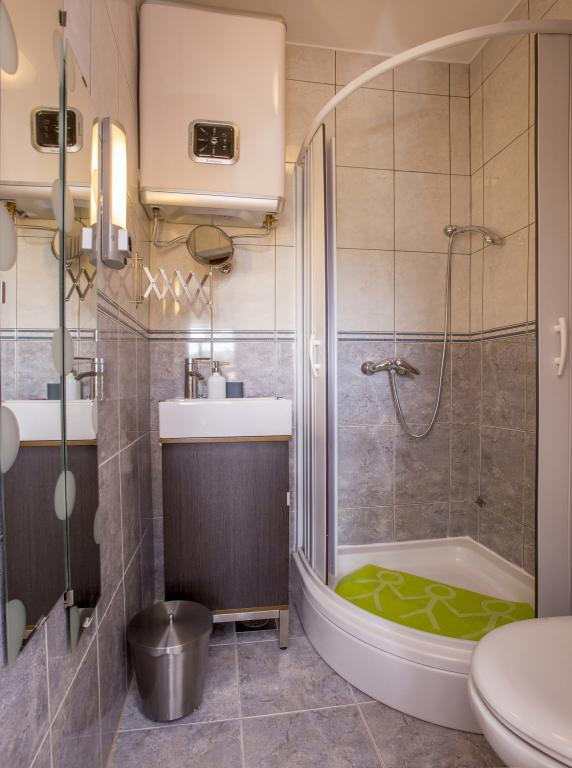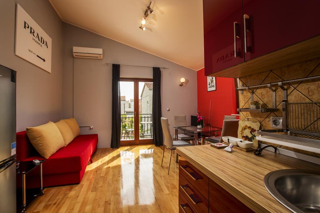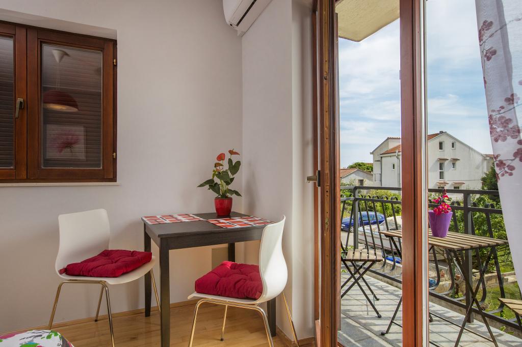 Popolnoma in moderno opremljeni apartmaji 80 m od morja. Apartma A1 (78 m2) ima dve spalnici, kuhinjo, kopalnico in veliko dnevno sobo z jedilnico in dodatnim ležiščem. Primerno za do 6 oseb, klimatizirano, gostom pa so na voljo SAT TV, WiFi internet, aparat za kavo, mikrovalovna pečica, opekač kruha in sef. Apartma A2 (41 m2) ima eno spalnico in prostor s kuhinjo, jedilno mizo in dodatnim ležiščem. Primerna je za do 4 osebe, je klimatizirana, ima dva balkona, gostom pa so na voljo SAT TV, WiFi internet, aparat za kavo, mikrovalovna pečica, opekač kruha in sef. Studio A3 je primeren za do 2 osebi, ima balkon, je klimatiziran, gostom pa so na voljo SAT TV, WiFi internet, aparat za kavo, mikrovalovna pečica, opekač kruha in sef. Možen je tudi najem celotne hiše, ki lahko sprejme do 12 oseb.
