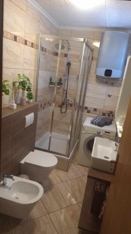 V stanovanju je vse od aparatov, posode, mila, praška za pomivanje posode, brisač, klimatske naprave ... ki bi morala imeti več kot to (pralni stroj), velikost je temna, terasa pod trto je odlična za sedenje in uživanje v zvečer. Vse je novo in vrhunsko čisto. Gostitelji so odprti in veseli, vedno so na voljo, če jih potrebujete, po drugi strani pa neopazni in ne kršijo zasebnosti gosta. V hladilniku so nas pričakali hladni napitki. Plaže so oddaljene 5 ali 10 minut hoje. Odličen kraj za lažje počitnice in za vsako priporočilo!