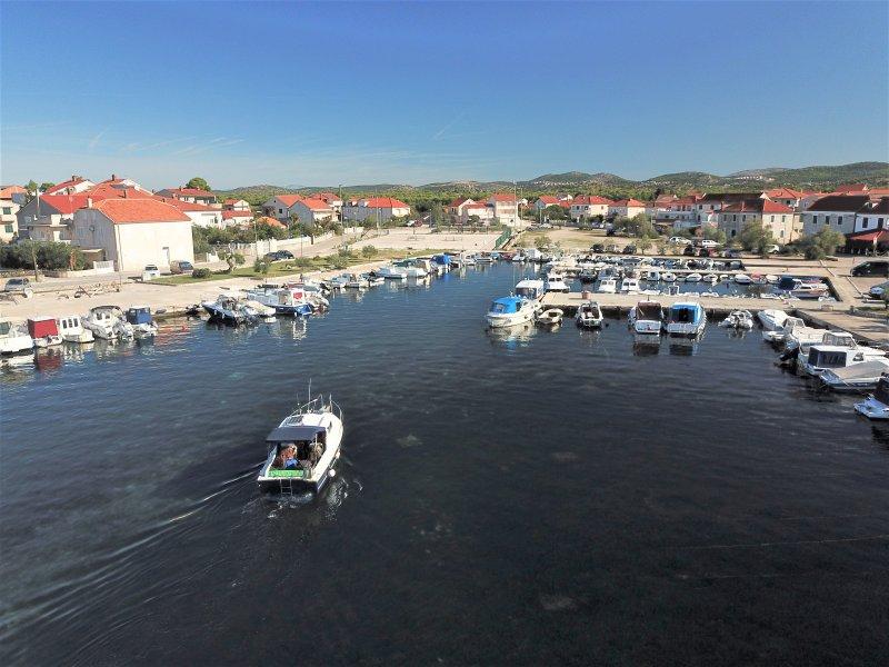 Popolnoma opremljeni apartmaji v središču Zablaca, 50 m od morja in 200 m od plaže, na južni strani cementne plaže v starem borovem gozdu in na zahodni strani prodnate (naravne) plaže. Deset minut hoje ločuje apartmaje od hotelskega kompleksa SOLARIS in znotraj istih 2 kilometrov vrhunsko urejenih plaž z različnimi športno-rekreacijskimi objekti ter vrhunsko gastronomsko in zabavno ponudbo podnevi in ponoči. Iz teh nekaj besed lahko sklepamo, da lahko vsaka starostna skupina zadovolji svoje potrebe in uživa v počitnicah v naših apartmajih. Vsi apartmaji so popolnoma opremljeni z vsem potrebnim inventarjem za udobno bivanje. Parkirišče pred hišo.