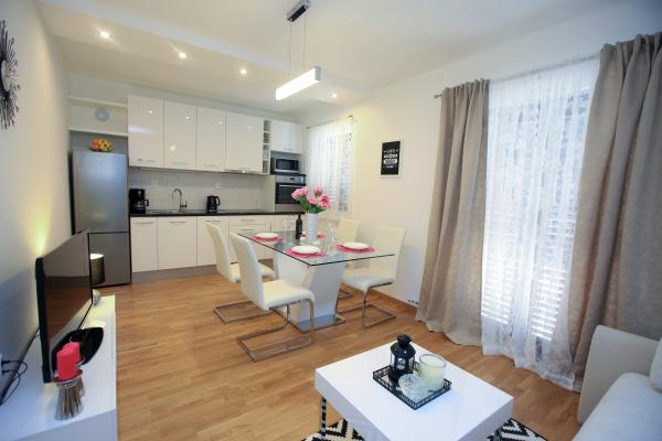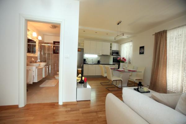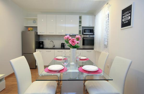 Vse pohvale čudovitim gostiteljem Zoranu in Veri, rožičevo žganje in ribe pod pokrovom kot majhen znak dobrodošlice so bili popoln uvod v pravi dopust! Blizu plaže (četudi je do nje le 1 minuta), luštnega in modernega apartmaja, sanjskega vrta, terase za jutranjo kavo in večerno druženje! Z mojimi piščanci smo v polnosti uživali!