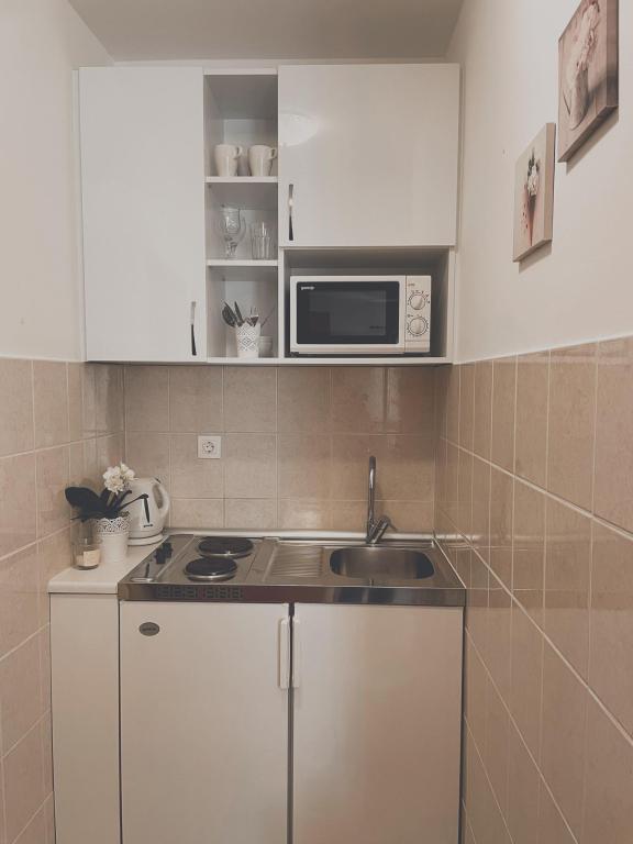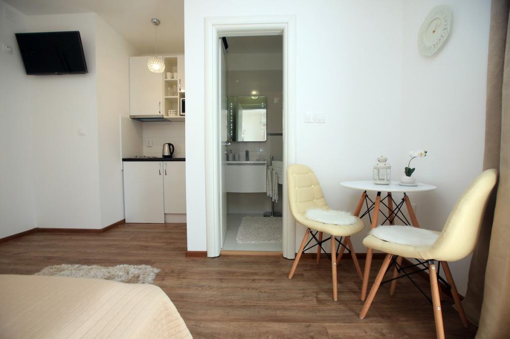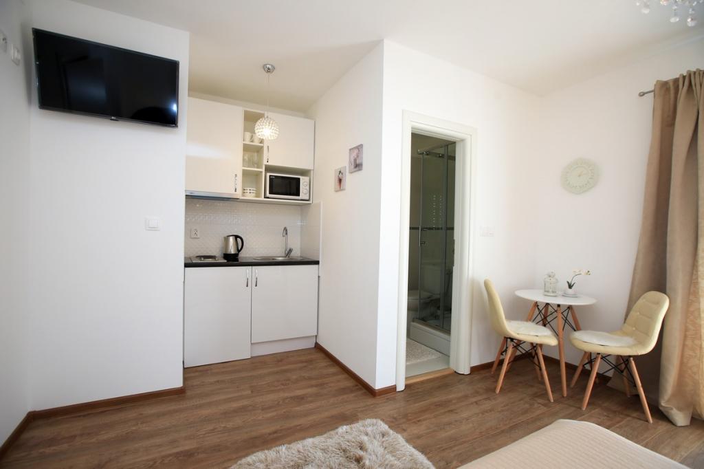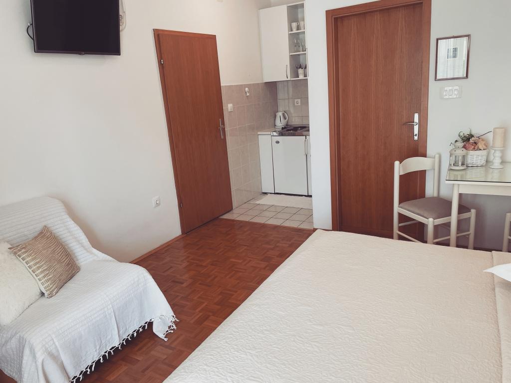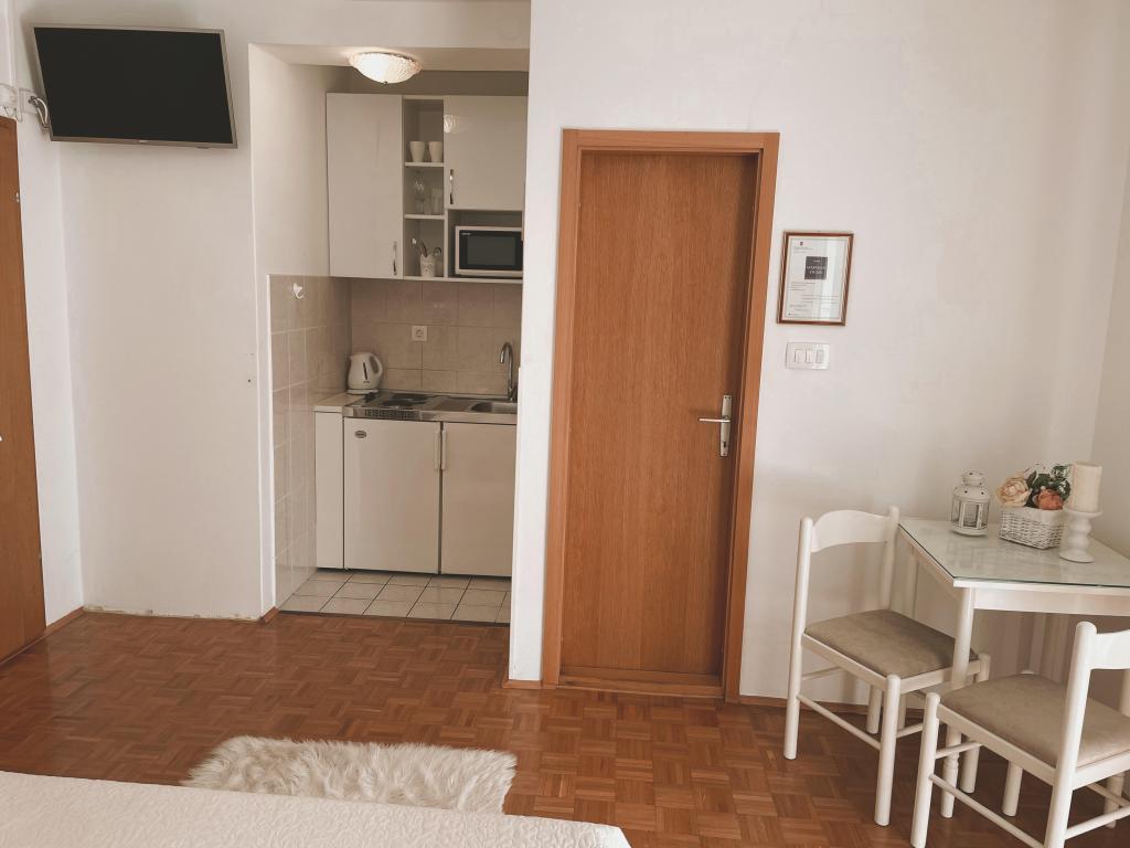 Čudovit studio s teraso s pogledom na morje in neverjetno dobro opremljeno kuhinjo. Lokacija je popolna. Vse je bilo kot v reklami, res nam je bilo všeč.