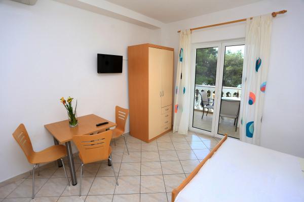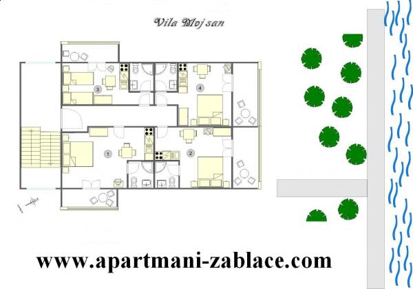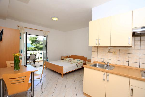 Dobrodošli, ponujamo vam udobno namestitev po dostopnih cenah Majhni studio apartmaji, idealni za dva, se nahajajo v kraju Zablaće, 10 minut vožnje od Šibenika. Mirno in mirno mesto, idealno za počitnice. Apartmaji so v prvi vrsti do morja, plaža je oddaljena 10 metrov od vrat apartmaja. Pred hišo je veliko dvorišče, zato je za naše goste na voljo brezplačno parkirišče. Vsi naši apartmaji so klimatizirani, imajo terase, TV / satelit in žar. Vsi naši gostje imajo brezplačen WiFi.