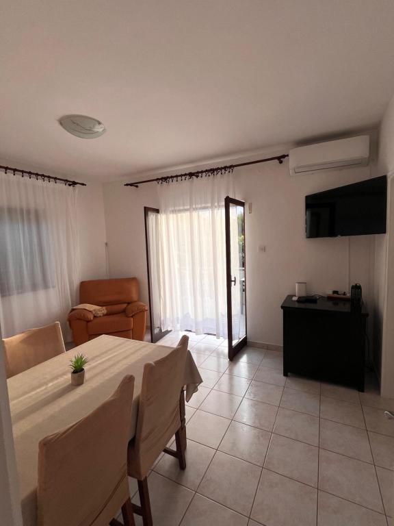 Dobrodošli v našem apartmaju, ki se nahaja v mirnem in slikovitem predelu Žaborića, le 50 metrov od morja! Apartma se nahaja v pritličju družinske hiše in ponuja popolno zasebnost, mir in udobje - idealno za družine z otroki, pa tudi za vse, ki si želijo brezskrbnega dopusta na jadranski obali. O apartmaju: nahaja se le 50 m od morja, s prostorno teraso, ima zasebno površino za sončenje pod teraso, velik ograjen vrt (približno 200 m²) - idealen kraj za igro otrok ali jutranjo kavo v senci ob ptičjem petju, gostje si lahko brezplačno postrežejo z domačim sezonskim sadjem z vrta - sočnimi figami in sladkim grozdjem, plaža je ograjena in varna - stran od cest in vseh motornih vozil, zaradi česar je idealna za otroke, zasebno parkirišče za 2 vozili znotraj dvorišča, hiter in brezplačen WiFi, TV z več kot 100 programi. Le 100 m od apartmaja se nahaja pekarna z dnevno svežim pecivom in toplim kruhom. Hišni ljubljenčki niso dovoljeni.