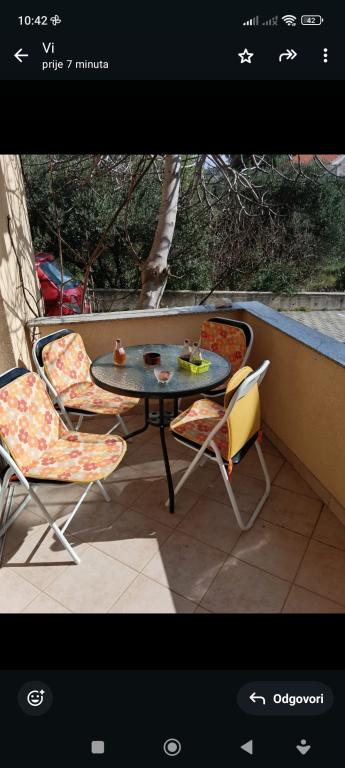 Popolnoma opremljeno stanovanje z vsemi aparati. Nahaja se v majhnem, slikovitem mestecu 7 km od Šibenika. Objekt se nahaja 200 metrov od plaže in 300 metrov od centra. Ima lastno parkirno mesto. Hišni ljubljenčki so dovoljeni. Možnost pečenja na žaru.