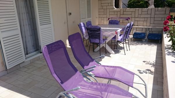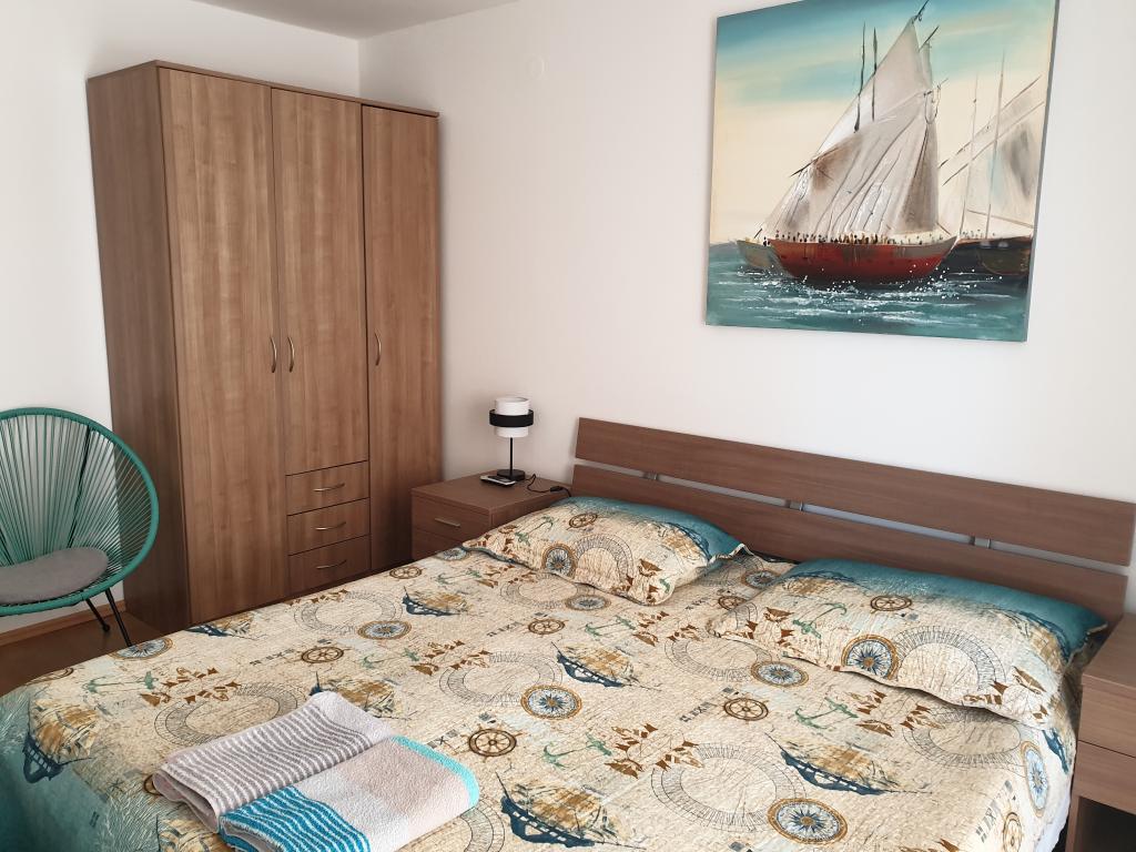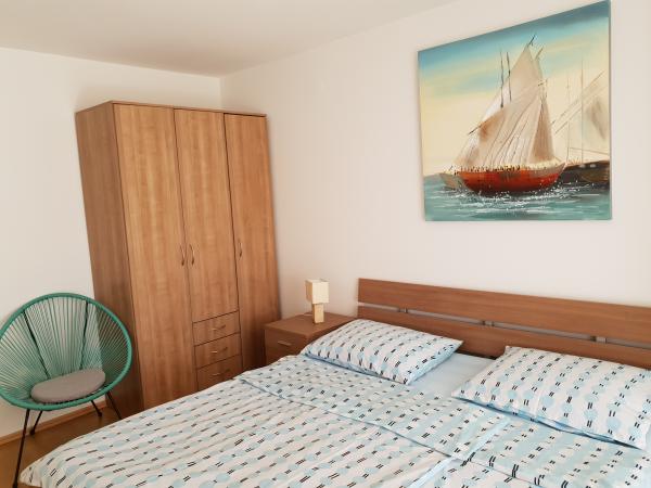 Popolnoma opremljeno stanovanje z veliko teraso, le 20 m od plaže, je prava izbira za. vse, ki želijo uživati ​​sproščeno počitnice in počitnice. Apartma je klimatiziran, gostje lahko uporabljajo brezplačno parkirišče, zunanji žar, tuš in WiFi. V bližini peščena, betonske in prodnate plaže, pizzerije, cocktail bari in igrišča zagotoviti odmik od vsakdanjega življenja in uživati, kar imate radi najbolj.