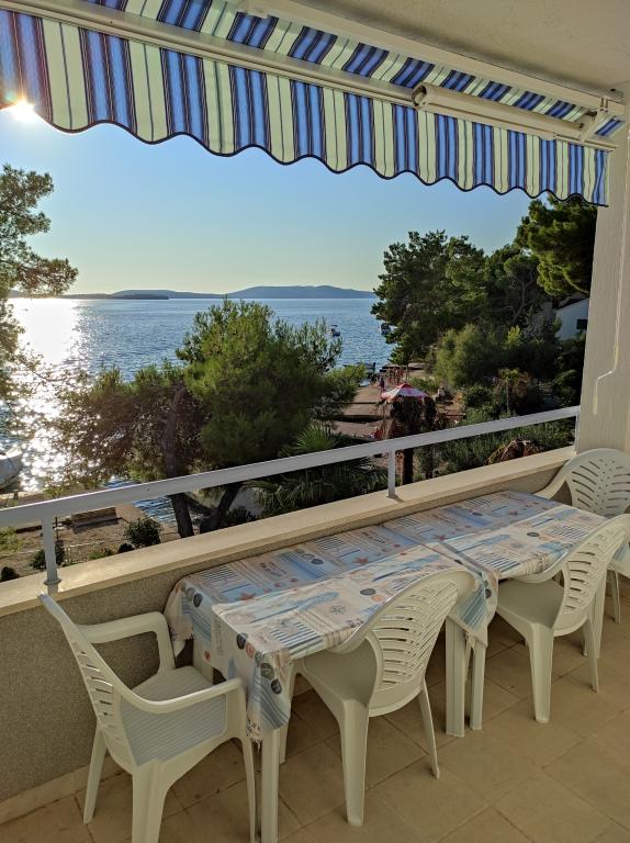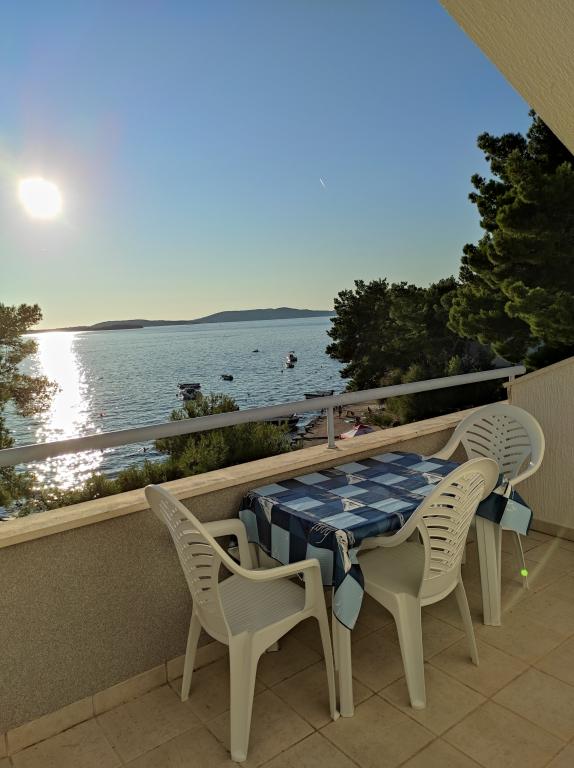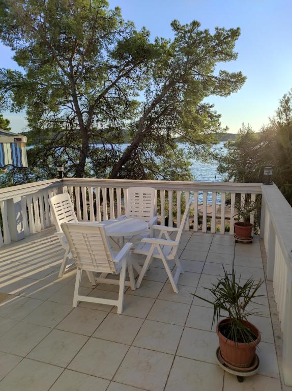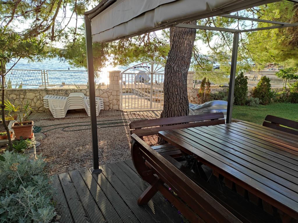 Vila Dradar se nahaja v prvi vrsti ob morju. Ap A10 (A6+A4) Ponujamo vam naš zelo pohvaljeni apartma A10, ki je sestavljen iz dveh nadstropij. Prostor je sestavljen iz: V prvem nadstropju je kuhinja, jedilnica/dnevna soba z raztegljivim kavčem, kopalnica, tri spalnice s 6 posteljami, omara in balkon s pogledom na morje pred hišo. Povezava med obema nadstropjema je notranje stopnišče. V drugem nadstropju je kuhinja, jedilnica/dnevna soba z raztegljivim kavčem, kopalnica, omara in dve spalnici s 4 posteljami, terasa s pogledom na morje. Na voljo imate tudi garažo, parkirišče za dva dodatna avtomobila, žar, vrt, vrtno pohištvo s tendo, zunanji tuš, ležalnike in senčnike, plažo pred hišo za odrasle in otroke. Imamo prostor za privez čolna. Vse je na novo opremljeno in kategorije 4 **** Cena bivanja je 40 € na osebo/noč. Ob prihodu je potrebno plačilo predplačila v višini ene dnevne najemnine, v primeru zavarovanja škode. Znesek se vrne ob odjavi.