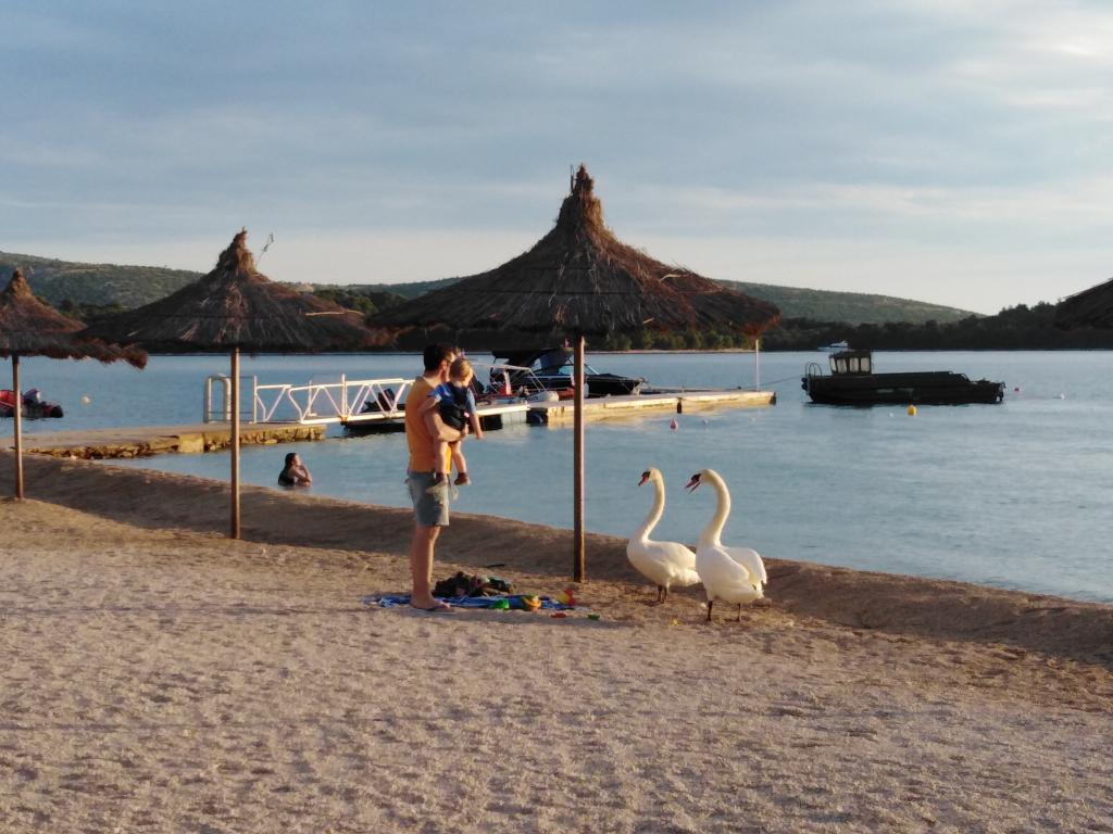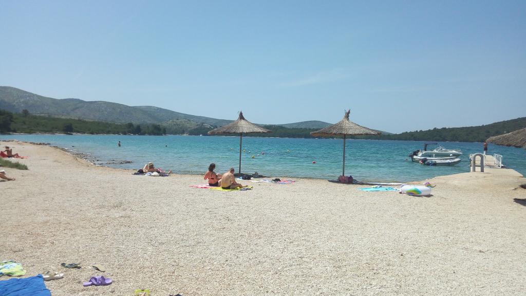 Zelo mirna, nenaseljena, prijetna plaža v zalivu, do katere se lahko pride z električnim vozičkom. Lokacija tik ob plaži, zelo veliko stanovanje v pritličju - zelo težko električno potovanje skozi teraso - samo en korak in prag - imeli smo svoje dovozne poti - tako da je bilo za nas v redu; zaradi naših zelo nenavadnih potreb - invalid z nami je uporabljal ogromno prho v sosednjem kampu na poti od plaže. Stanovanje v slogu 90-ih - morda ne po najnovejši modi, vendar dobro vzdrževano in zelo čisto, klima in polna oprema. In kar je najpomembneje - JOŠKO - zlati mož - neverjetno prijazen in ustrežljiv, s katerim se lahko lepo pogovarjate, pijete, kar kdo rad igra biljard in namizni tenis. JOŠKO - HVALA !!! LEP POZDRAV !!! SE VIDIVA KMALU !!!