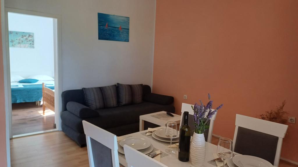 Najprej čudoviti gostitelji, ki so nas sprejeli kot da smo dolgoletni prijatelji. Apartma je izjemno čist, prostoren, popolnoma opremljen. Terasa je čudovita, z veliko mizo in veliko prostora za uživanje. Gostje lahko uporabljajo tudi žar, ki se nahaja na dvorišču, čez cesto od apartmaja. Plaža je od apartmaja oddaljena 1 minuto hoje in ima bar na plaži.
