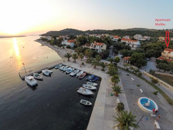 Apartmaji Malibu so popolnoma in moderno urejeni apartmaji, ki se nahajajo v prvi vrsti ob morju. Ponujamo dva apartmaja, ki sta opremljena s kuhinjo, kopalnico, spalnico, LCD TV, brezplačnim brezžičnim internetom, imata lastna parkirna mesta in terase s čudovitim razgledom, kjer lahko večerjate s pogledom na morje in sončne zahode. Nudimo tudi popolnoma opremljeno mobilno hiško s pokrito leseno teraso. Našim gostom smo na voljo ves čas. .