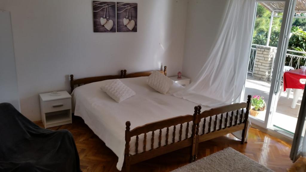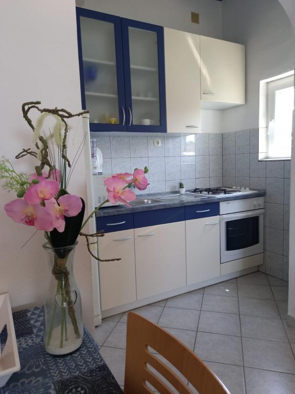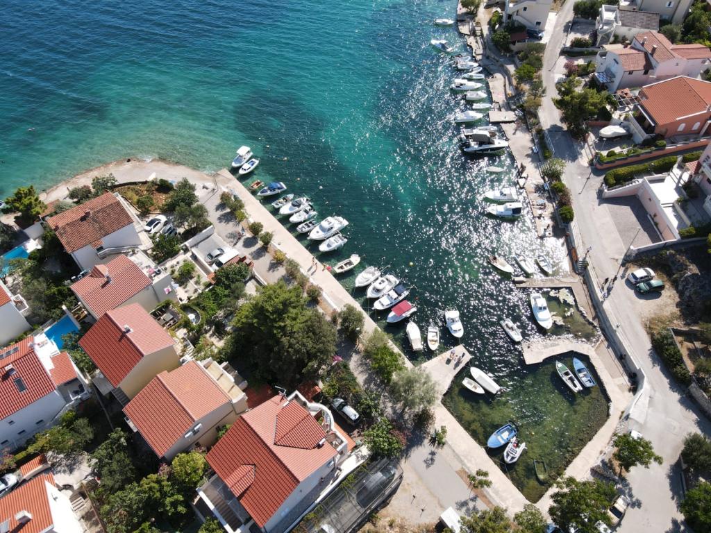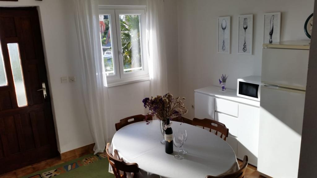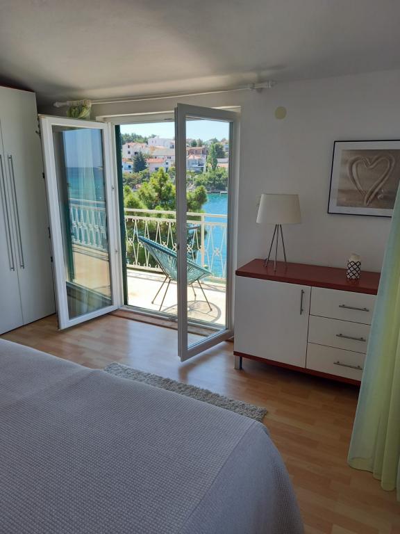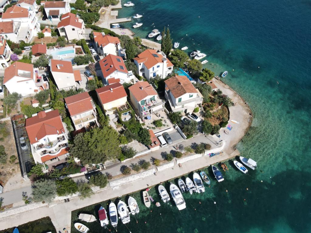 Popolnoma opremljeni apartmaji v mirnem zalivu, tik ob morju. Plaža se nahaja tik pred hišo. Apartma se nahaja 5 minut hoje do centra in 5 minut hoje do trgovine.