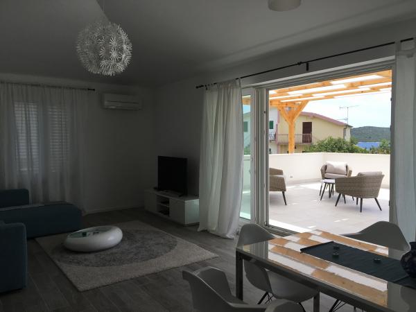 Udobni, moderno opremljeni apartmaji v Žaboriću (10 km od Šibenika), ki se nahajajo v drugi vrsti od morja. Objekt se nahaja nekaj minut hoje od plaže. Vsi apartmaji imajo teraso/balkon, popolnoma opremljeno kuhinjo, kopalnice s tušem. Apartmaji so opremljeni s satelitsko televizijo in brezžičnim internetom. Objekt ima zunanji bazen, ki ga lahko uporabljate vsak dan od 10. do 22. ure. Objekt ima zadostno število parkirnih mest za vse uporabnike apartmajev.