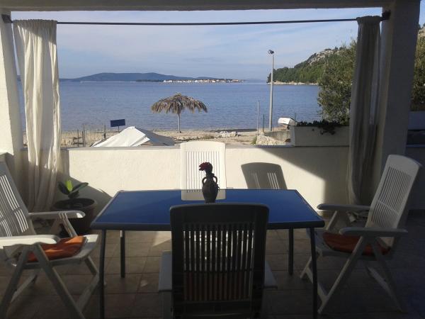 Slavka apartmaji se nahajajo v čudovitem zalivu na peščene plaže, 20 metrov od morja. Nudimo tudi 3-apartmaja za 2-4 oseb. Ponudba vključuje dve spalnici stanovanje 95m2 za namestitev 4-7 oseb, z veliko teraso s pogledom na morje. Vsa stanovanja imajo neposreden pogled na morje. Apartmaji so popolnoma opremljeni in klimatizirani.U Cena vključuje klimatsko napravo, WiFi internet, ležalnikov in vsi davki. Na voljo je tudi žar. Brezplačno parkirišče za vse goste v hiši. Zahvaljujemo se vam za vaše zanimanje in lep pozdrav iz Hrvaške.