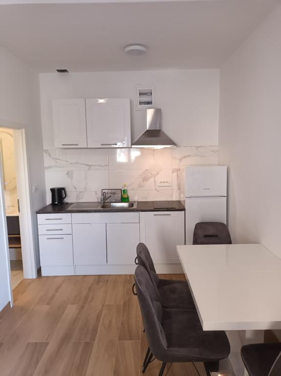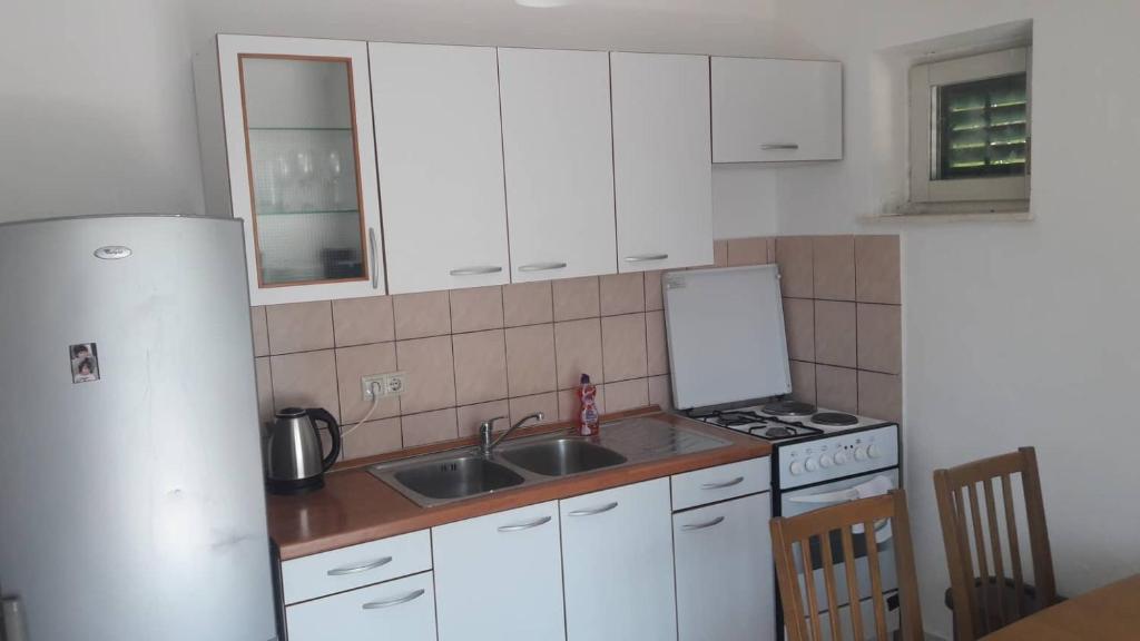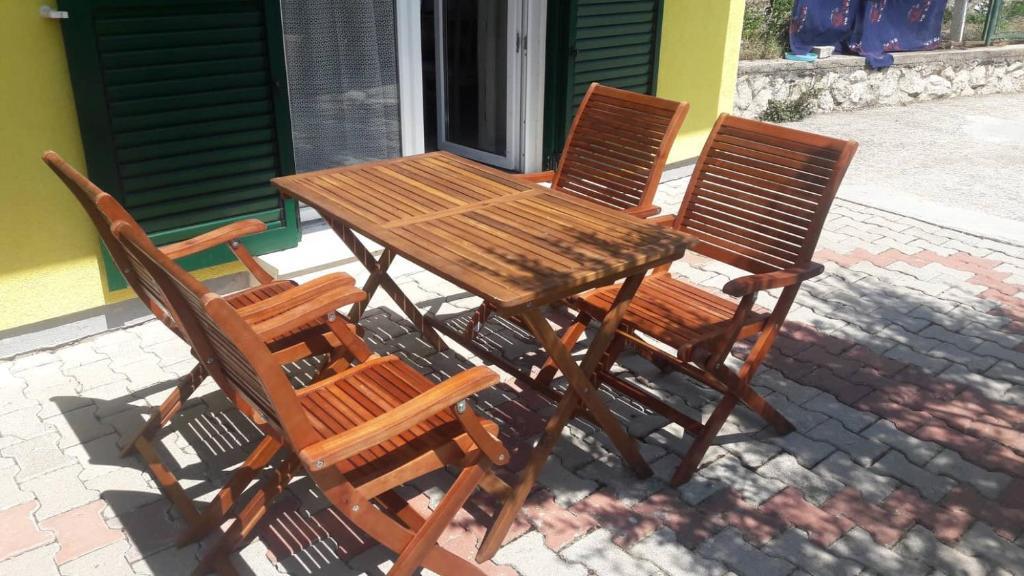 Preberite več Namestitvene enoteApartma A 5+2 ID 79415 se nahaja v prvem nadstropju in ima: dve spalnici, ena z veliko zakonsko posteljo, druga s 3 ležišči za eno osebo, kuhinjo z dnevno sobo v kateri je raztegljiv kavč za dve osebi. oseb, 2x kopalnice in balkon z mizo. Apartma A 3+2 ID 79447 se nahaja v prvem nadstropju in obsega: eno spalnico z veliko zakonsko posteljo + postelja za eno osebo, kuhinjo z dnevno sobo v kateri je raztegljiv kavč za dve osebi, 2x kopalnici in balkon z mizo. Studio apartma A 2+1 ID 79448 se nahaja v pritličju in ima: zakonsko posteljo + enojno posteljo, kuhinjo, kopalnico in teraso z mizo. Studio apartma A 2+0 ID 79449 se nahaja v pritličju in ima: zakonsko posteljo, kuhinjo, kopalnico in teraso z mizo. Akontacija rezervacije znaša 20% akontacije na TRR najemnika, ostalo ob prihodu. Akontacija je nepovratna. Prijava je od 15h, odjava do 10h.