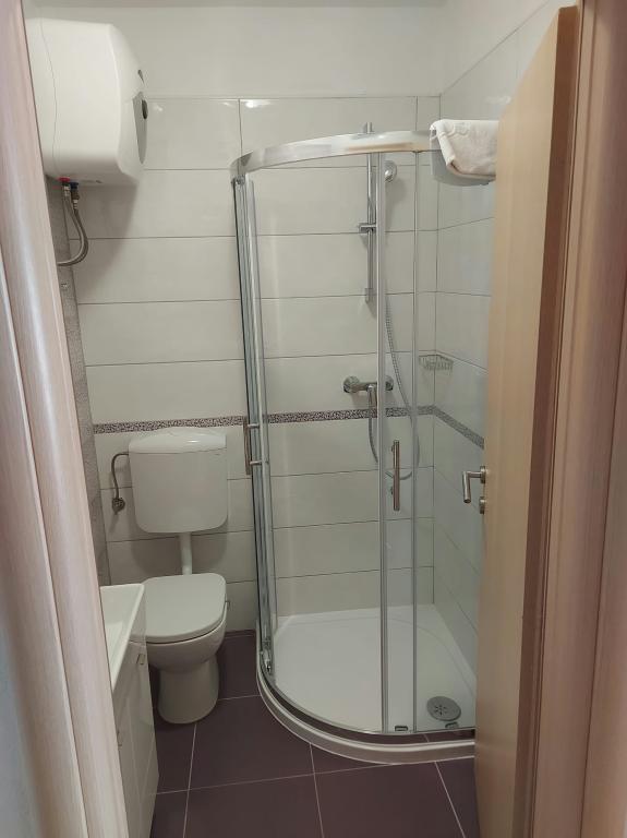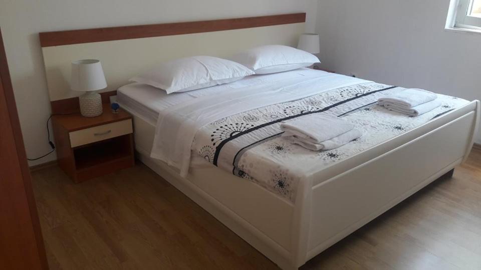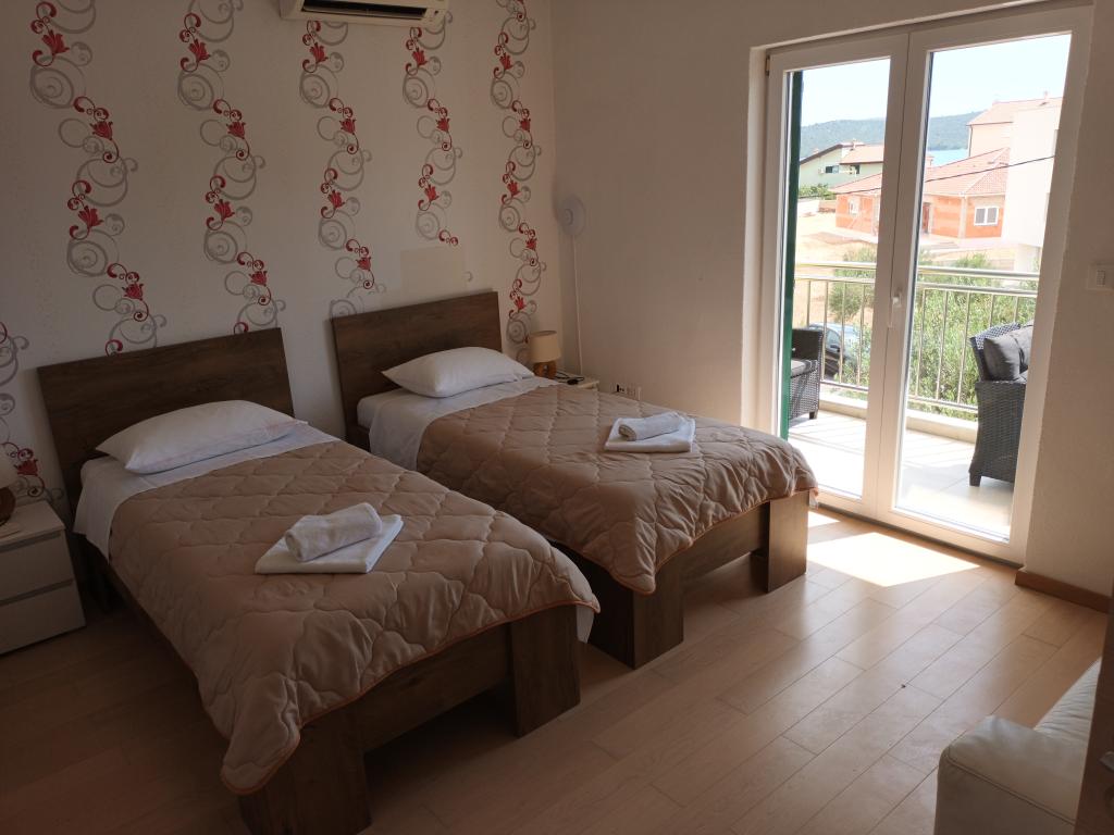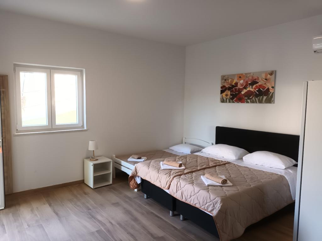 Turistična taksa je vključena v ceno. Dokument o potrditvi rezervacije ob rezervacijiApartma A 4+1 ID 79244 se nahaja v pritličju in ima: eno spalnico z veliko zakonsko posteljo + pograd za dve osebi (otroka), kuhinjo z dnevno sobo z raztegljivim kavčem za eno osebo ali 2 otroka. , kopalnico in teraso z mizo. Apartma A 2+2 ID 79303 se nahaja v pritličju, prvi ob bazenu in ima: eno spalnico z veliko zakonsko posteljo, kuhinjo z dnevno sobo v kateri je raztegljiv kavč za dve osebi, kopalnico in terasa z mizo. Apartma A 3+2 ID 79316 se nahaja v prvem nadstropju in obsega: eno spalnico z veliko zakonsko posteljo + postelja za eno osebo, kuhinjo z dnevno sobo v kateri je raztegljiv kavč za dve osebi, kopalnico in balkon z mizo. Apartma A 4+2 ID 79350 se nahaja v prvem nadstropju in ima: dve spalnici z veliko zakonsko posteljo, kuhinjo z dnevno sobo v kateri je raztegljiv kavč za dve osebi, 2 kopalnici in balkon z mizo.