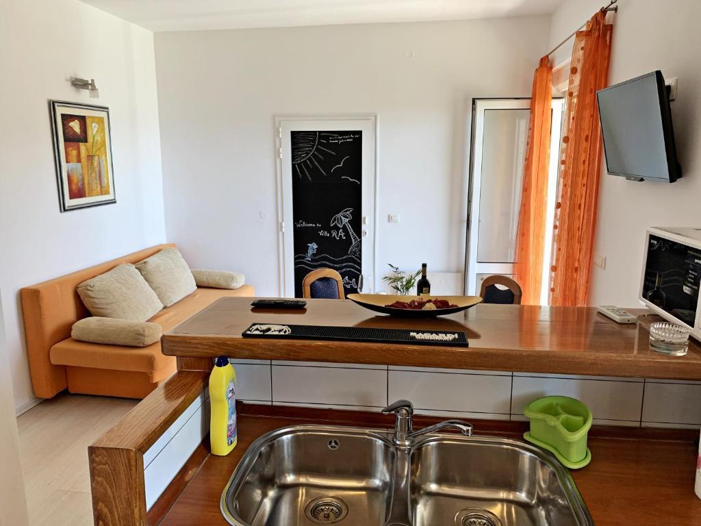 Villa RA vsebuje 4 popolnoma in moderno opremljene apartmaje s skupnim bazenom, žarom, brezplačnim zasebnim parkiriščem, vrtom. Apartmaji se nahajajo v mirnem, intimnem predelu, 250m oddaljeni od prodnate plaže Jasenovo, primerni za družine z majhnimi otroki, 200m stran je restavracija z bogato ponudbo ribjih in mesnih specialitet ter lounge bar, na plaži je sta tudi dve prijetni restavraciji / kavarni z zabavnimi igrami. Villa Ra je oddaljena 10 km od srednjeveškega bisera - mesta Šibenik, 20 km od čudovitega narodnega parka Krka, 20 km od Primoštena, medtem ko sta mesti Split in Zadar oddaljeni 80 km.