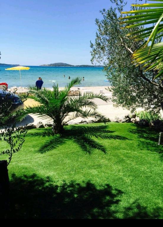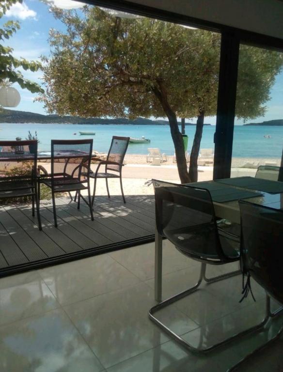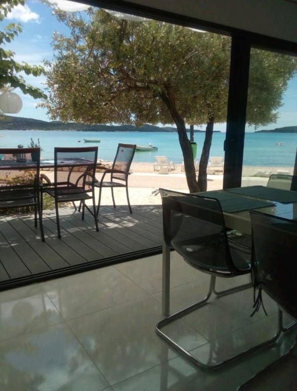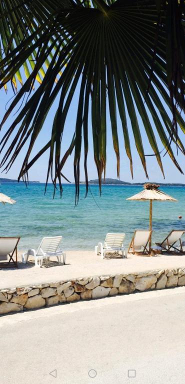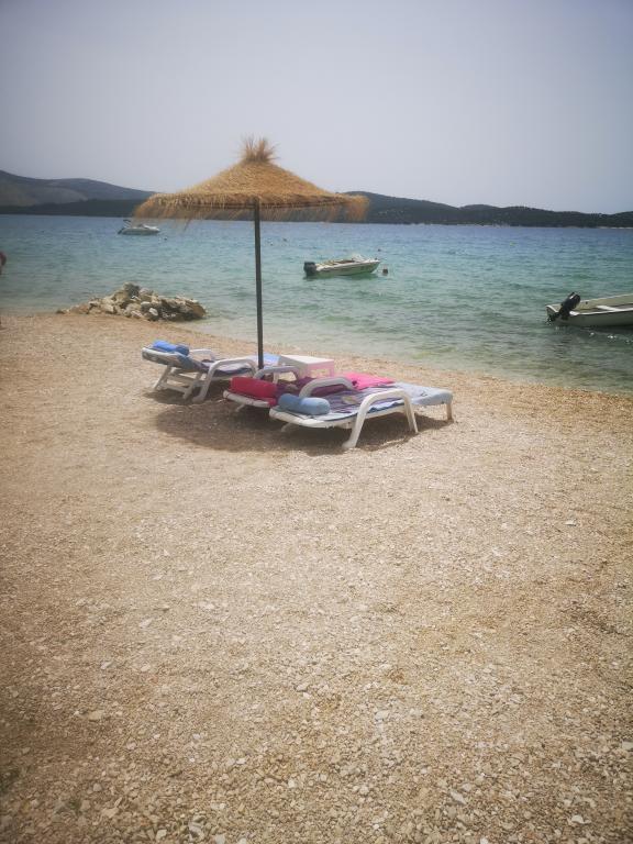 Popolnoma in moderno opremljeni apartmaji v mirnem kraju Žaborić pri Šibeniku, ki se nahaja v prvi vrsti do morja. Plaža je tik pred zgradbo na razdalji 5 metrov od apartmaja. Vsi apartmaji imajo pogled na morje. Vsi apartmaji so opremljeni z vsemi gospodinjskimi aparati: pomivalni stroj, pralni stroj, mikrovalovna pečica, kuhalna plošča, pečica, kotliček, hladilnik z zamrzovalnikom ,, TV SAT, WI-FI internet, sušilnik za lase, opekač. Nekateri apartmaji imajo stroj za led. Vsi apartmaji imajo brezplačno parkiranje in brezplačno uporabo žara na dvorišču ter brezplačne stole za plažo. Hišni ljubljenčki so dovoljeni. Možnost uporabe privezov za čoln do 7 metrov in parkiranje za prikolico. Otroška posteljica na zahtevo. Gostje se lahko sprostijo na viseči mreži v senci vrta. Možno je najeti čoln in jet ski poleg hiše. V bližini je vodni trampolin za otroke, pa tudi kopenski trampolin.