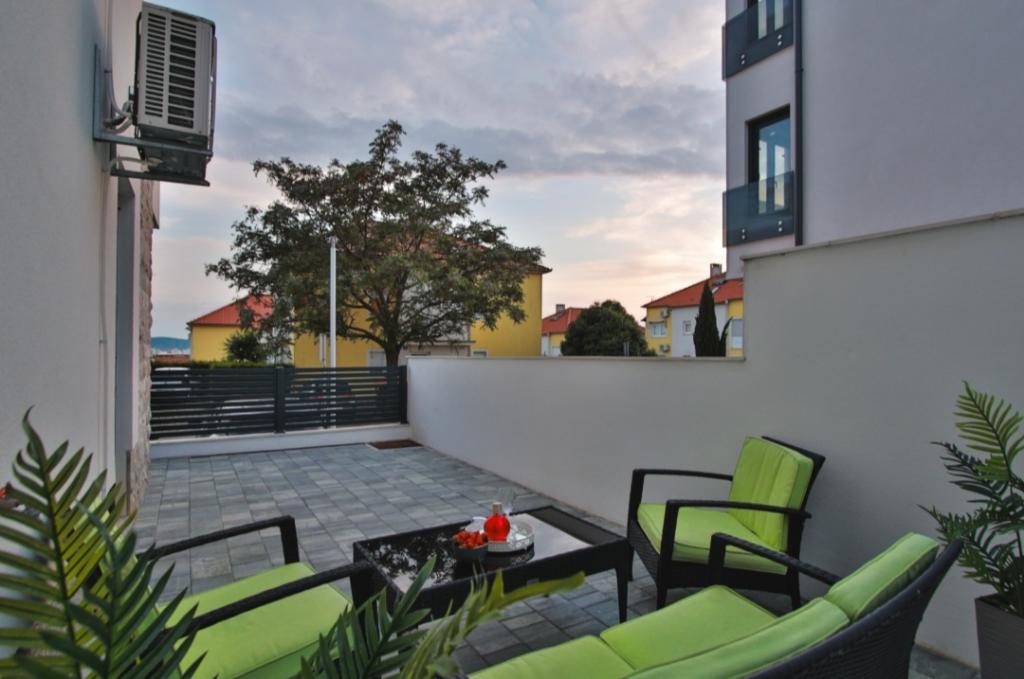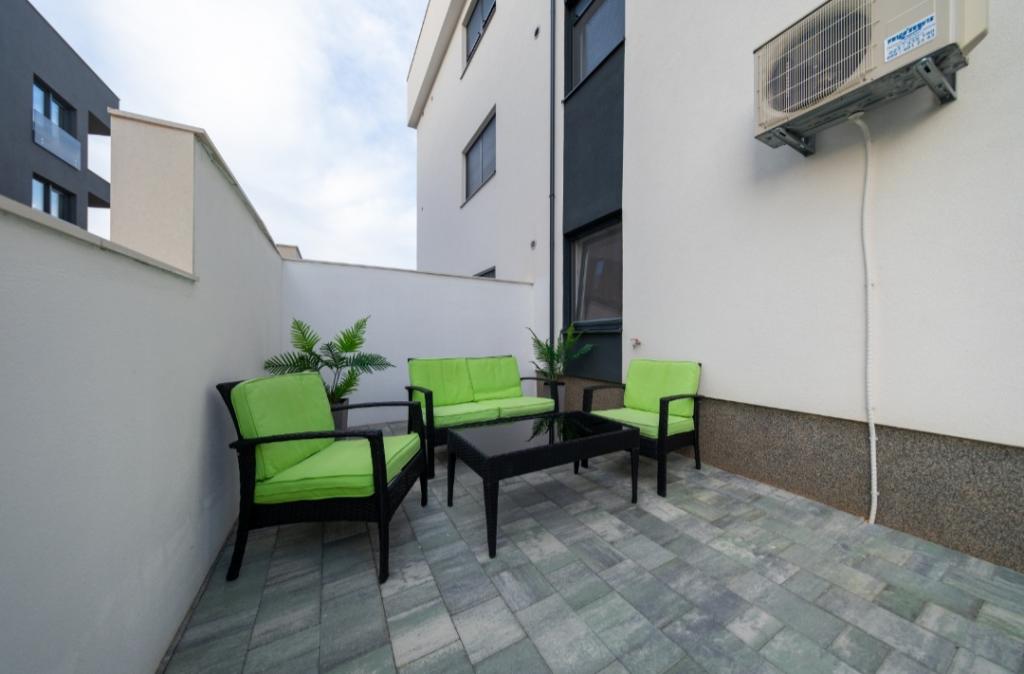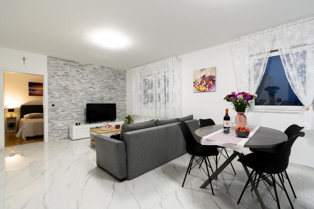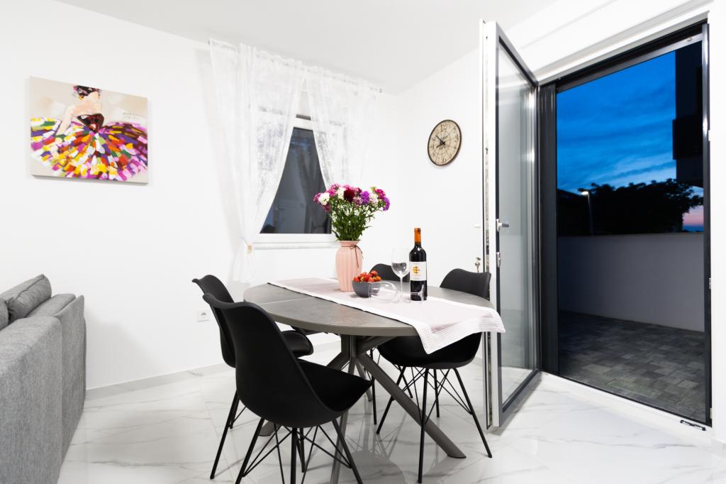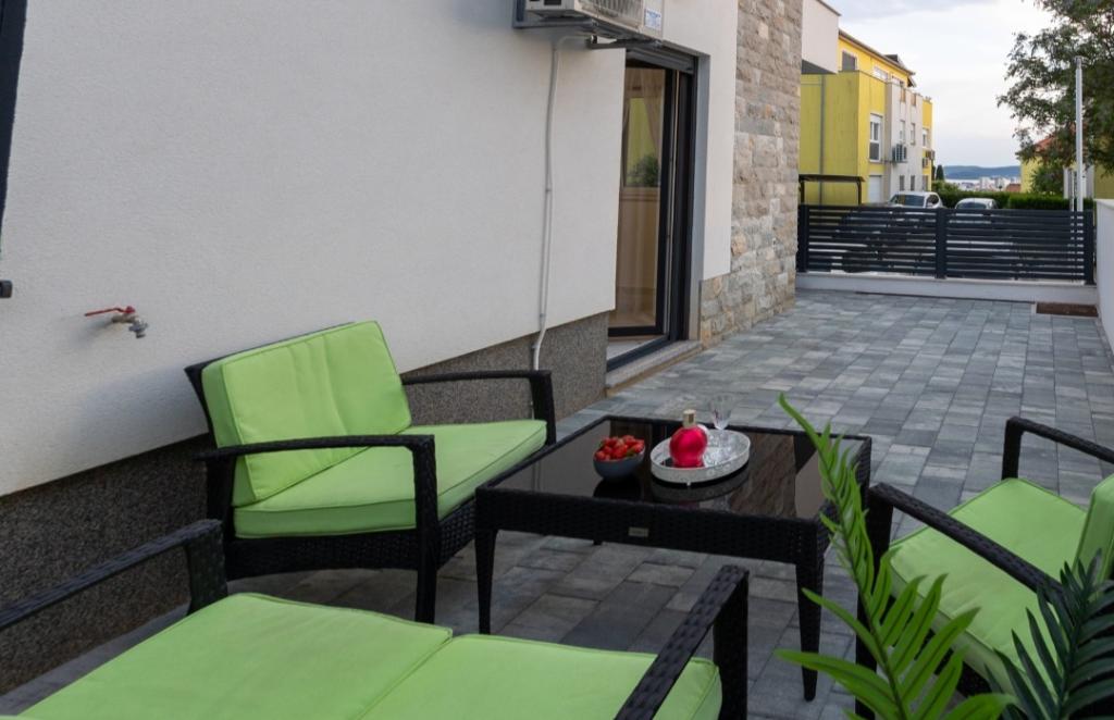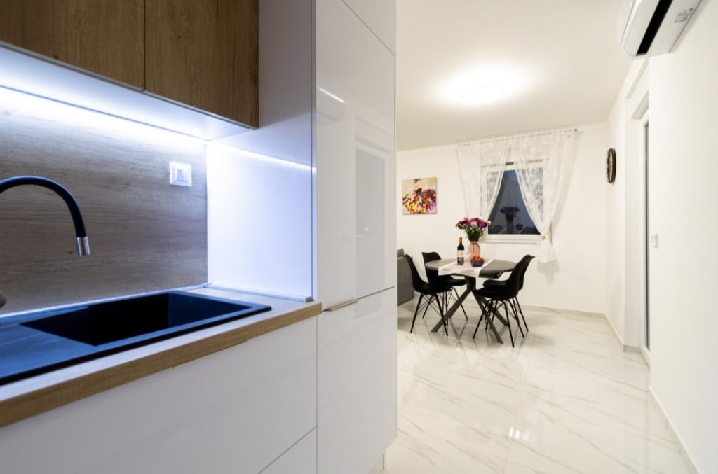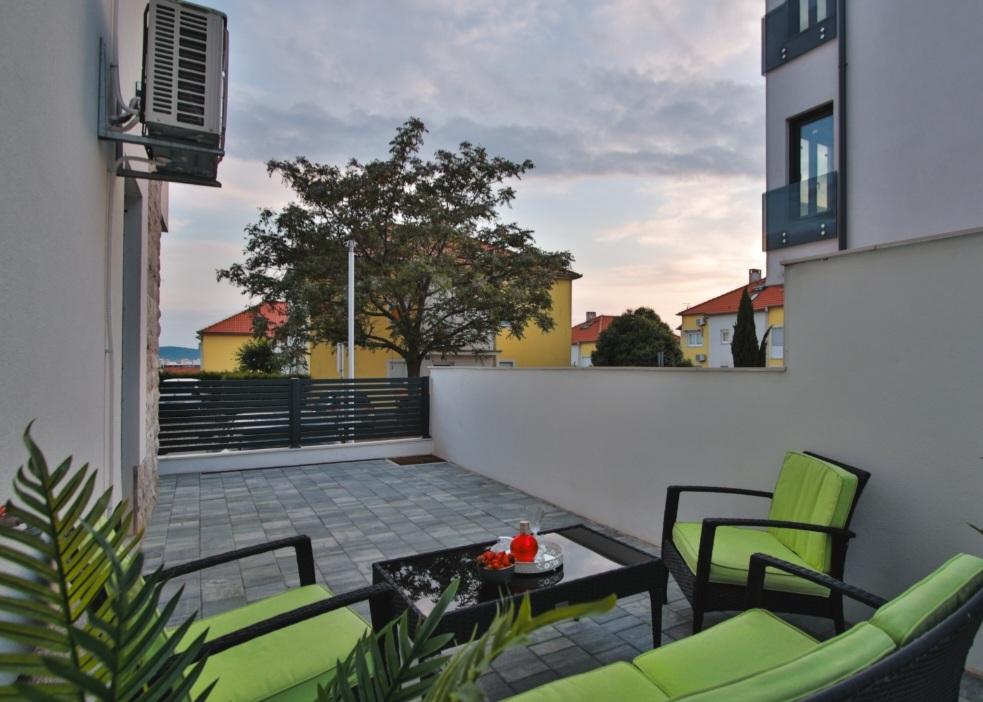 Na novo prenovljen enosobni apartma se nahaja v mirnejšem delu Zadra. Apartma ima veliko teraso in 2 brezplačni parkirni mesti
