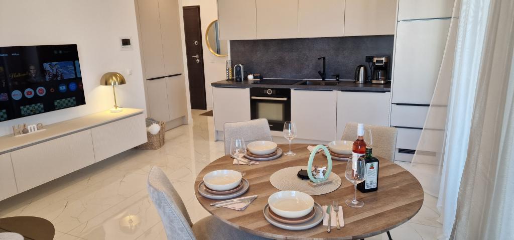Ambiente Borik je nov apartma ob morju, ki ponuja popolno kombinacijo udobja, prostora in ambienta. Nahaja se na odlični lokaciji "Borik Zadar" v bližini urejenih plaž in hotela Falkesteiner. Dnevna soba je prostorna in svetla, idealna za sprostitev in druženje. Kuhinja je popolnoma opremljena z vsemi potrebnimi aparati in kuhinjskimi pripomočki. Z dvema spalnicama, vsaka opremljena z udobnimi posteljami in elegantnim pohištvom, ter dvema kopalnicama ponuja dovolj prostora za namestitev dveh parov ali skupine do štirih gostov. Velika terasa ponuja dodaten prostor za sprostitev na prostem. Na terasi lahko uživate v zajtrku ali večerni pijači, v zasebnosti in mirnem kotičku za sprostitev. Stanovanje je luksuzno opremljeno s skrbno izbranimi detajli. Na voljo je tudi zasebno parkirišče in garaža, ki zagotavljata udobje in varnost gostom, ki prihajajo z avtomobilom. Skratka, to obmorsko stanovanje ponuja vse, kar potrebujete za udobno bivanje. Dvigalo je bilo dobrodošlo po napornem sprehodu po zadrski obali.