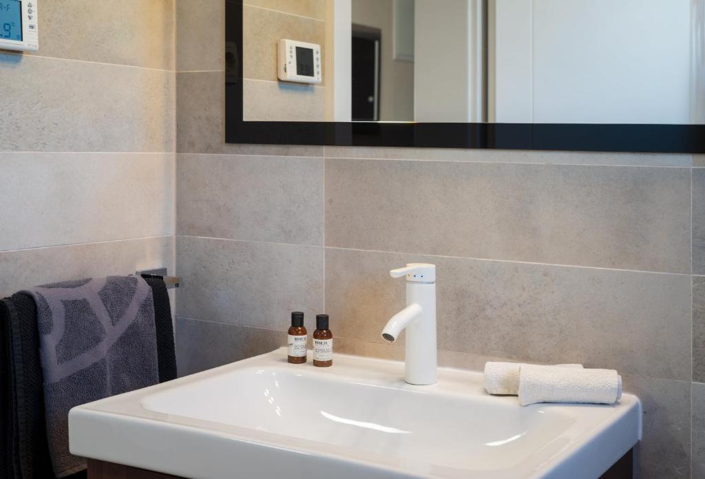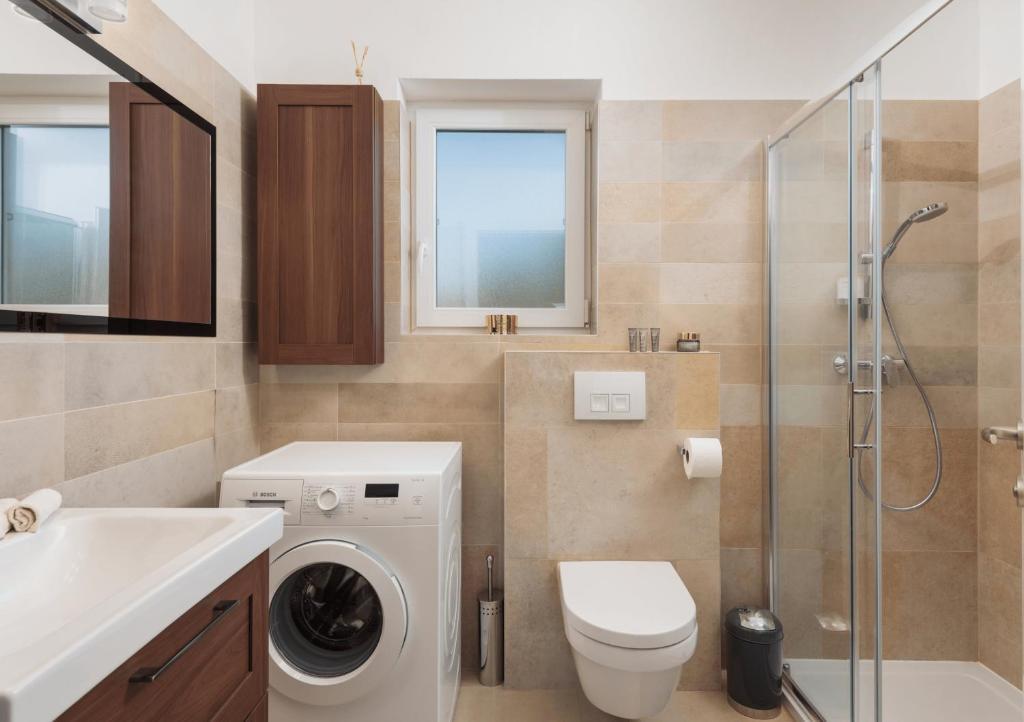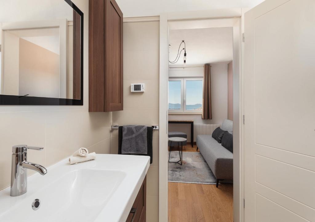 - 2 spalnici - 2 kopalnici - dnevna soba - popolnoma opremljena kuhinja - hladilnik - aparat za kavo - klima - 2 terasi - pogled na morje - pralni stroj - raztegljiv kavč - zvočna izolacija - internet - TV - satelit