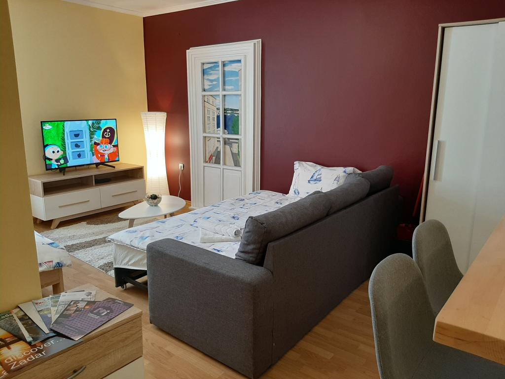 Popolnoma urejen in moderno opremljen apartma v centru starega mesta, le 50 m od marine in morja. Vsi objekti so le nekaj minut hoje, kot so restavracije, bari, Trg sv. Anastazije ... Čeprav se nahaja v središču starega mestnega jedra, se stanovanje nahaja v mirni in mirni ulici, zato je idealno tako za zabavo kot za družinske počitnice.