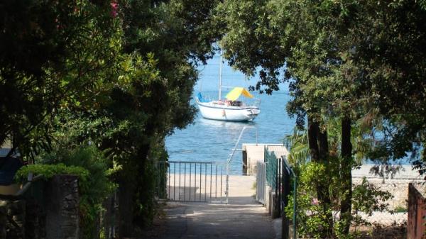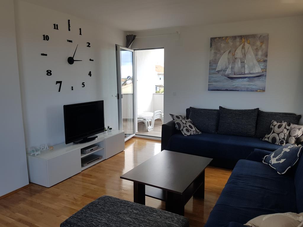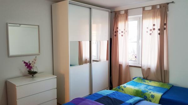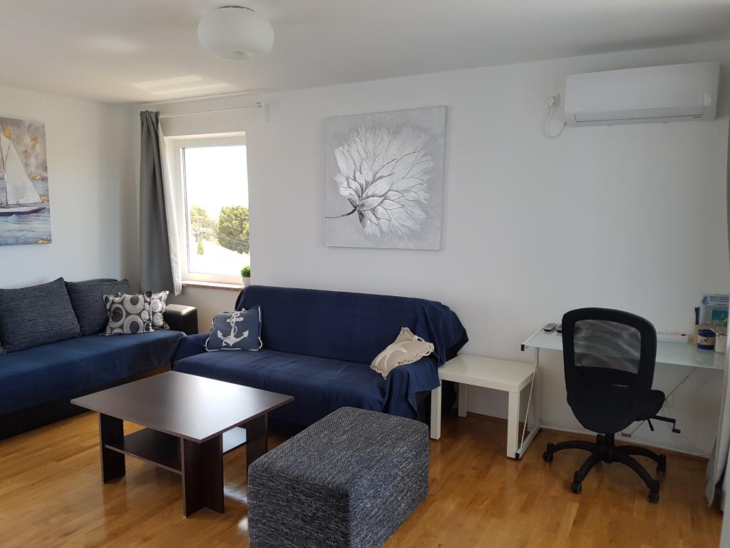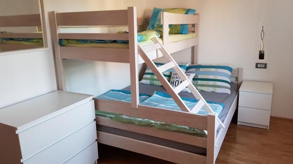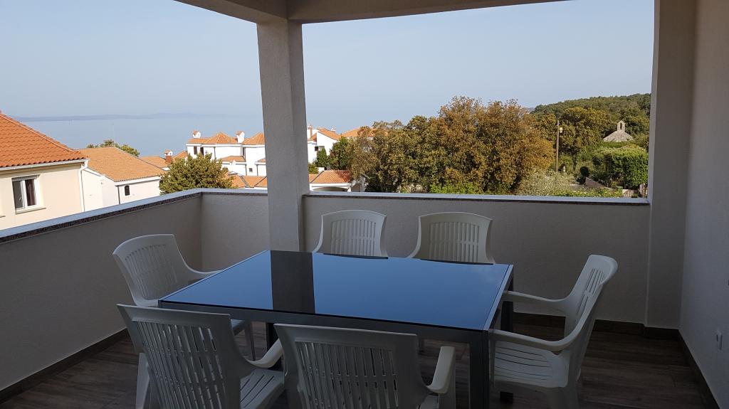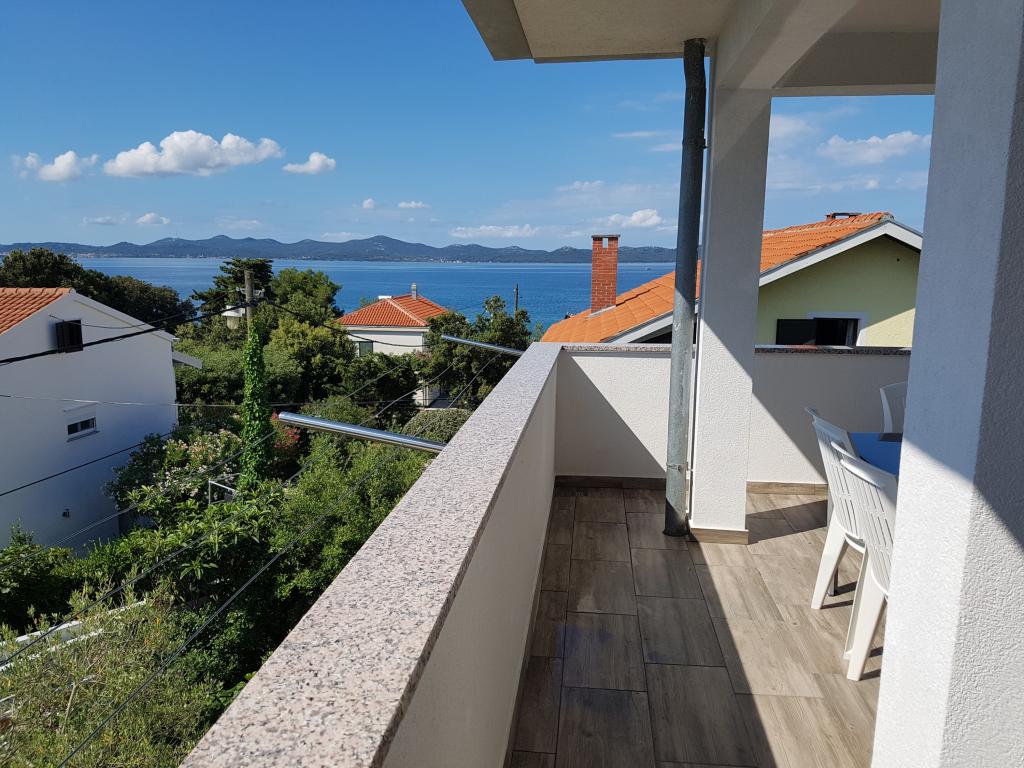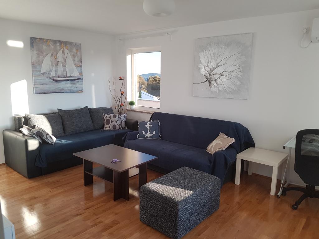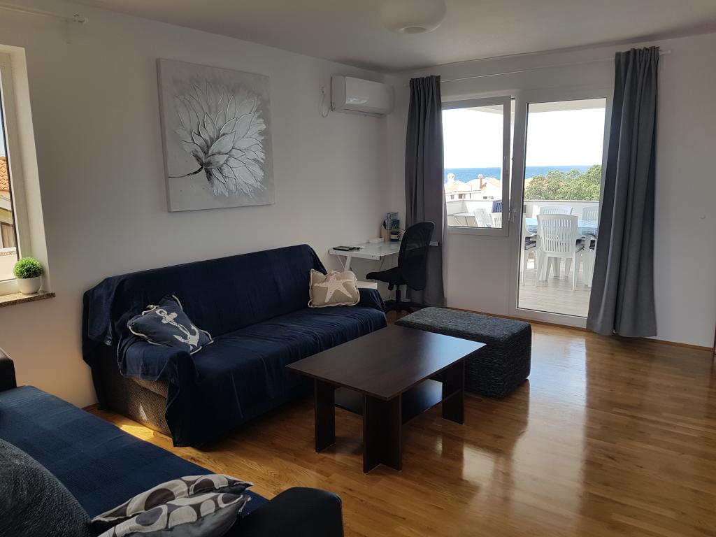 Apartma se nahaja na mirni lokaciji, 40m od plaže. Ima površino 140m2 s 3 spalnicami, 1,5 kopalnicami, kuhinjo, dnevno sobo in dvema terasama s pogledom na morje. Odlično je za velike družine ali 2 družini, ki nimajo nič proti skupnemu življenju in želijo malo prihraniti. Odlična je tudi za mlade pare, ki se želijo dobro zabavati. Je dovolj udoben za 10 oseb. Če jih mora priti več, je vse mogoče :) Stanovanje se nahaja v zgornjem nadstropju hiše na sliki, zato je razgled čudovit. Apartma je opremljen s: TV, satelitskim, DVD predvajalnikom, klimatsko napravo v vsaki sobi, pomivalnim strojem in pralnim strojem. Brezžični internet je v apartmaju brezplačen. Na vrtu sta žar in miza za namizni tenis. Parkirišče je na voljo na dvorišču. Ne živimo v hiši, zato boste večinoma sami. :)