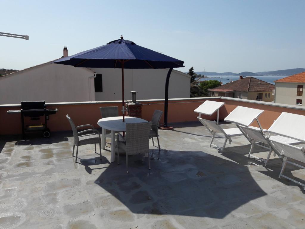 Apartmaji se nahajajo v mirnem okolju, v nizu družinskih hiš, prva vrsta hiš ob glavni cesti, ki vodi do morja, manjše pristanišče, le 70 metrov od morja center starega mesta, 25 minut hoje ob morju ali 5 minut hoje do uradne plaže.