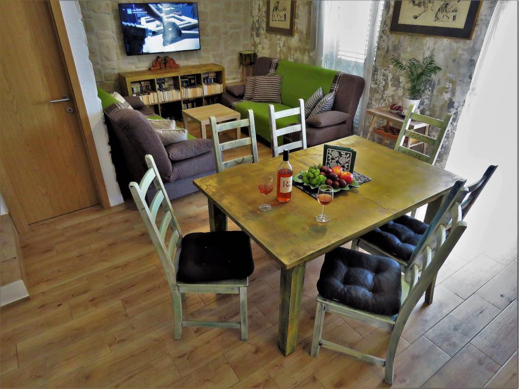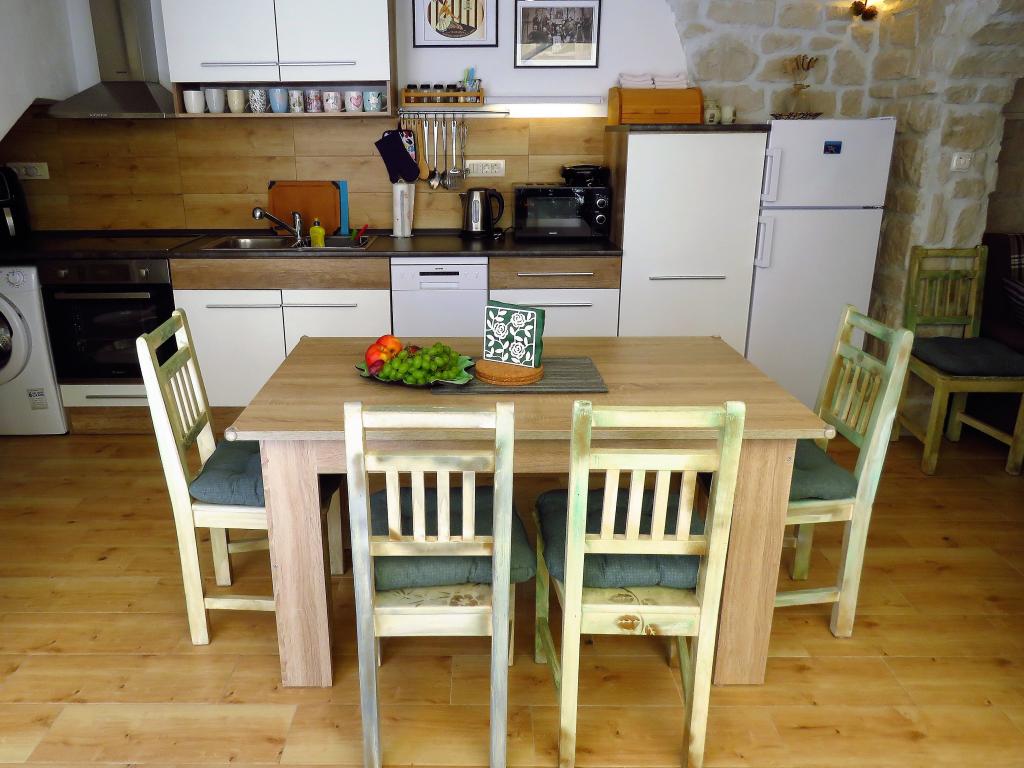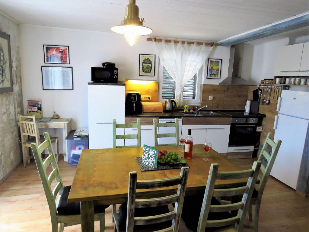 Tu pri Hobbitu se boste od samega začetka počutili kot v vati. Takoj boste pozabili na več urno pot in očarali vas bodo esprit in dišeče vzdušje nove, kamnite hiše z zunanjimi žaluzijami, cvetočimi cvetovi, prijetnimi "klet" s čudovitimi fotografijami, ki vas bodo popeljale v antične čase. Tu se lahko sprostite s knjigo ali z družino na žaru. Prijazna, bistra in ustrežljiva lastnica gospe bo z veseljem odgovorila na vsa vaša podrobna vprašanja, pomoč in nasvet. Iskreno pišem za tako izvrstno, kakovostno, dolgo nismo nikjer spali. Dizajn, mehka posteljnina, več blazin, kakovostne vzmetnice in klimatska naprava zagotavljajo odlično udobje spanja. Kopalnica je zelo prostorna, oblikovana, tuš kabini ne manjka gelov za tuširanje, velikih in majhnih glav za tuširanje, veliko mehkih brisač in brisač. V kuhinji je tudi vse sodobno udobje, pomivalni in pralni stroj. Lepi stoli, v stari optiki, elegantni. Verjemite, da boste odšli s težkim srcem, in pogrešali ga boste.