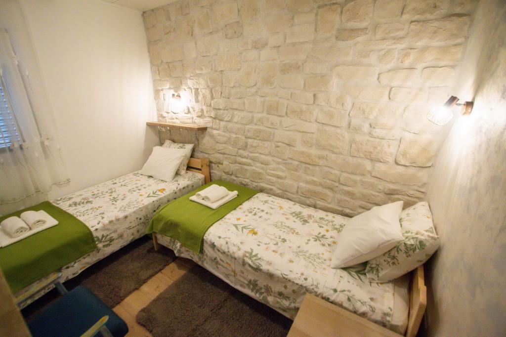 V novi zasebni hiši v Zadru v mestni četrti Arbanasi sta dva apartmaja (kategorija 4 zvezdice). Vsak apartma ima ločen vhod in zasebnost. Klima v vsaki sobi. Talno ogrevanje v vsaki sobi. V prvem nadstropju je HOBBIT1 (5 2), popolnoma opremljen apartma s kuhinjo. Dve kopalnici s straniščem. Velika terasa z jedilno mizo. V pritličju je HOBBIT2 (4 2) popolnoma opremljen apartma s kuhinjo. Prostorna kopalnica s straniščem. Velika jedilnica z izhodom na dvorišče in jedilno mizo. Vsak apartma ima pomivalni stroj, pralni stroj, likalno desko in likalnik, sušilec za lase, otroško posteljico, otroški stol, kad, stranišče in nočno omarico za dojenčke, satelitsko televizijo z nacionalnimi programi več svetovnih jezikov in otroške programe, internet WIFI. Trgovina z živili v neposredni bližini - 40 m. Mestni avtobus do centra v bližini - 20 m. Sprehodite se ob morju do centra približno 20 min. Plaže po vaši izbiri v bližini - 4 minute hoje.
