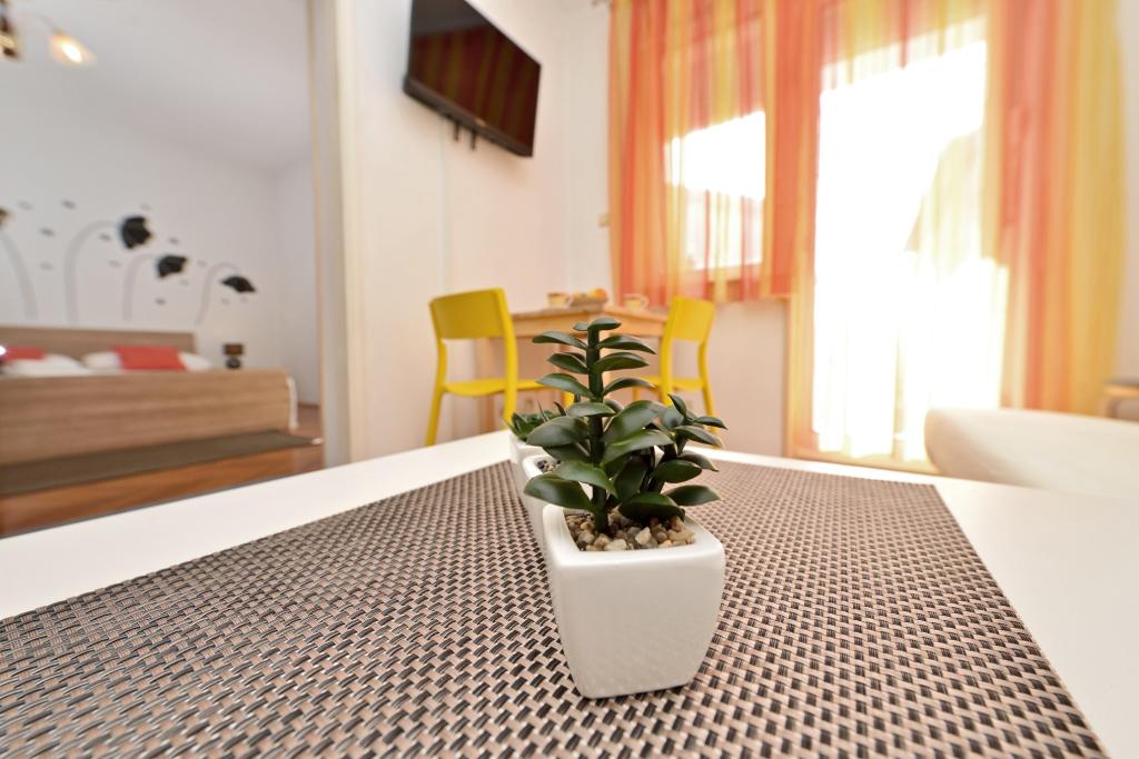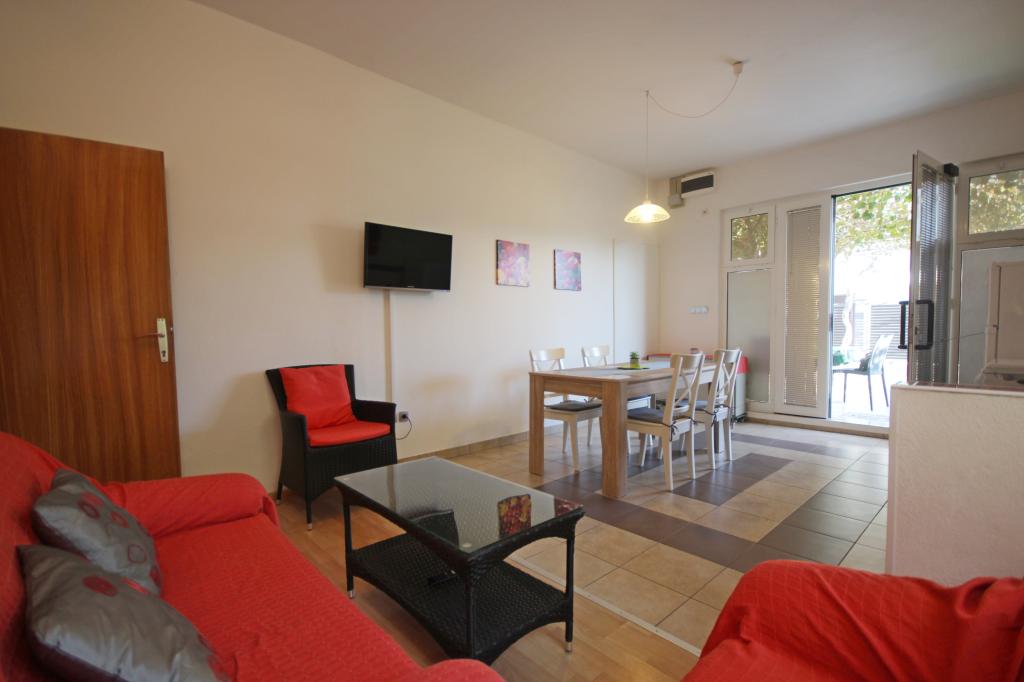 Apartma v mirnem in turističnem delu Zadra, imenovanem Borik. Objekt se nahaja 8 minut do plaže, supermarketa in avtobusne postaje. Stanovanje je v celoti opremljeno z vsem, kar potrebujete. Ima dve spalnici, kopalnico, veliko dnevno sobo s kuhinjo in jedilnico, en balkon zadaj in teraso spredaj. Apartma ima klimo, satelitsko televizijo, wifi je na voljo. Parkirišče je na dvorišču. Gostom je na voljo žar, ki se nahaja tudi na dvorišču objekta.