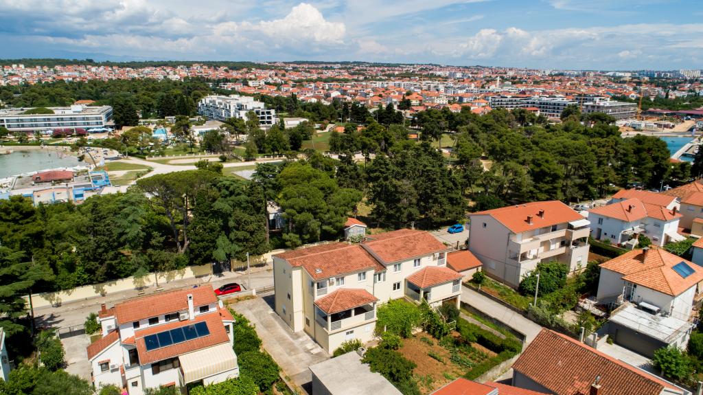 Idealna lokacija za mirne družinske počitnice. Apartmaji Sunset Puntamika se nahajajo na odlični lokaciji v Zadru, le 100 metrov od čudovite peščene plaže Borik, in svojim gostom ponujajo možnost mirnih družinskih počitnic. Objekt ima 6 apartmajev. Štirje apartmaji lahko sprejmejo 3 osebe, eden 4 osebe in eden 6 oseb. Apartmaji imajo popolnoma opremljeno kuhinjo (hladilnik, kuhalna plošča, posoda ...), LCD televizor, klimatsko napravo, kopalnico, velike zakonske postelje itd. Za vsak apartma je zagotovljeno parkirišče in brezžični internet. Objekt se nahaja na mirni lokaciji brez prevelike gneče. Vsi bistveni objekti so dostopni peš. Središče Zadra je oddaljeno 3 kilometre, letališče Zadar pa le 15 kilometrov. Avtobusna postaja je oddaljena 200 metrov od apartmaja.