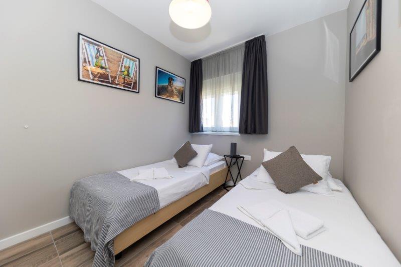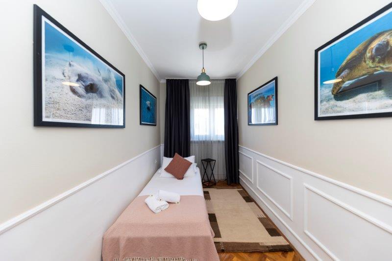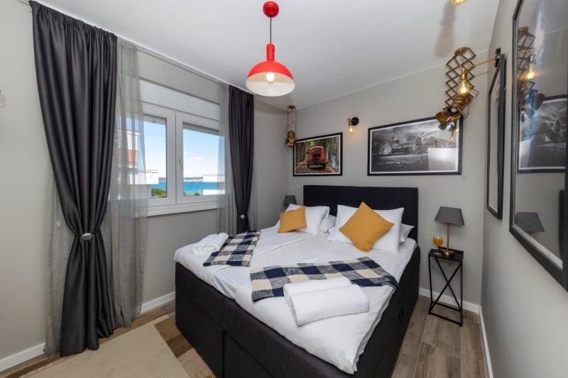 Stanovanje je zelo veliko. Zelo udobna postelja s trdo vzmetnico. Ne tako daleč od plaže, le 2-3 minute hoje. Peščena plaža Borik nam ni bila všeč in ostali smo na kamniti plaži v bližini (Plaža Borik), kjer smo s pomola skočili v vodo. Temperatura vode je bila popolna.