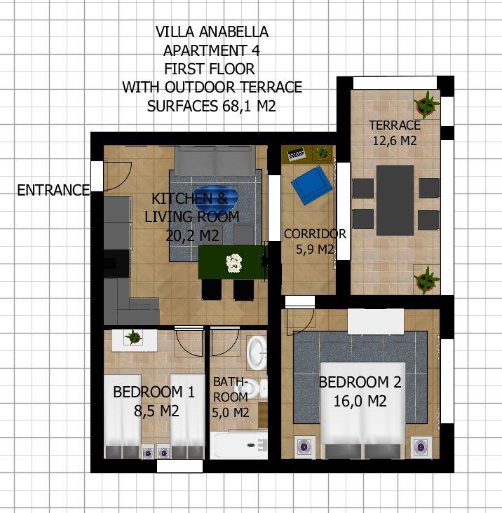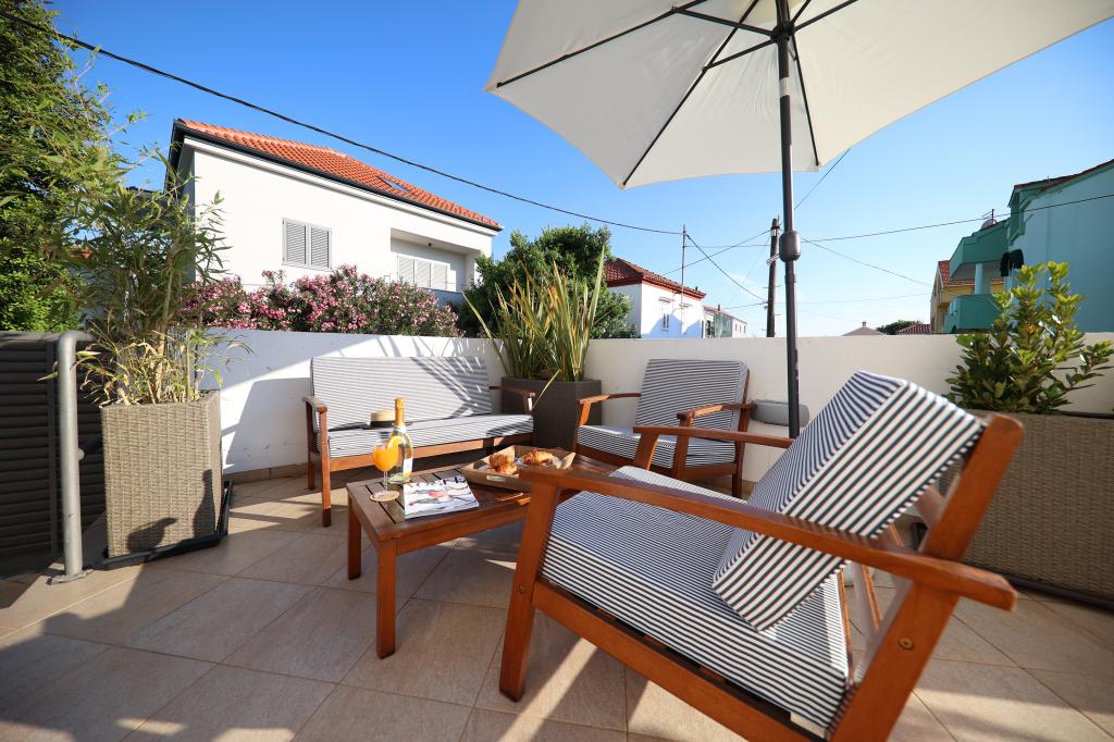 Če se želite zbuditi ob šumenju morja in se zjutraj najprej sprehoditi do plaže ter spiti jutranjo kavo na udobnih naslanjačih na naših terasah, so naši apartmaji idealni za vas. 100 m od nastanitve lahko izbirate med: peščenimi, prodnatimi in betonskimi plažami. Naših 7 apartmajev se nahaja v pritličju, 1. in 2. nadstropju stanovanjske stavbe, namenjene izključno turističnim namenom. 2023, vse na novo okrašeno. App1, App2, App3, App4, App6 velikost 32-38 m2 namenjeno za maks. 2 osebi, App A5, 68 m2, je namenjen za max. 4 osebe, App A7 velikosti 90 m2 je namenjen za max. 5 ljudi. Vsak apartma ima vrt z različnimi sedežnimi garniturami in žarom. Hiša se nahaja v mirnem predelu Zadra (Puntamika), le 4 km od centra, do katerega vodi sprehajališče v neposredni bližini stavbe. Vsem gostom je na voljo brezplačno parkiranje, neomejena uporaba Wi-Fi-ja, SAT/TV in klimatske naprave.
