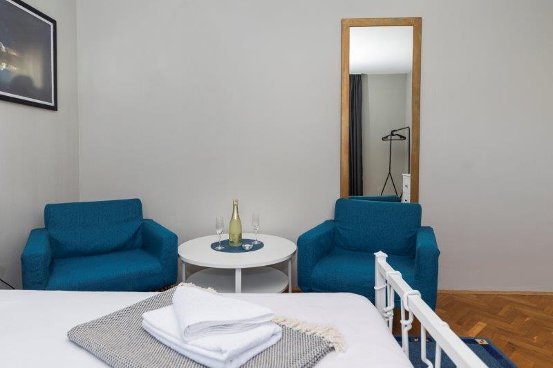 Gospa, ki je lastnica apartmajev, je bila izjemno prijazna in ustrežljiva ter je bila polna veselja. Soba, ki smo jo dobili, je bila ogromna in je bila tudi zelo čista in razkužena, kar nam je v zvezi s pandemijo veliko pomenilo.
