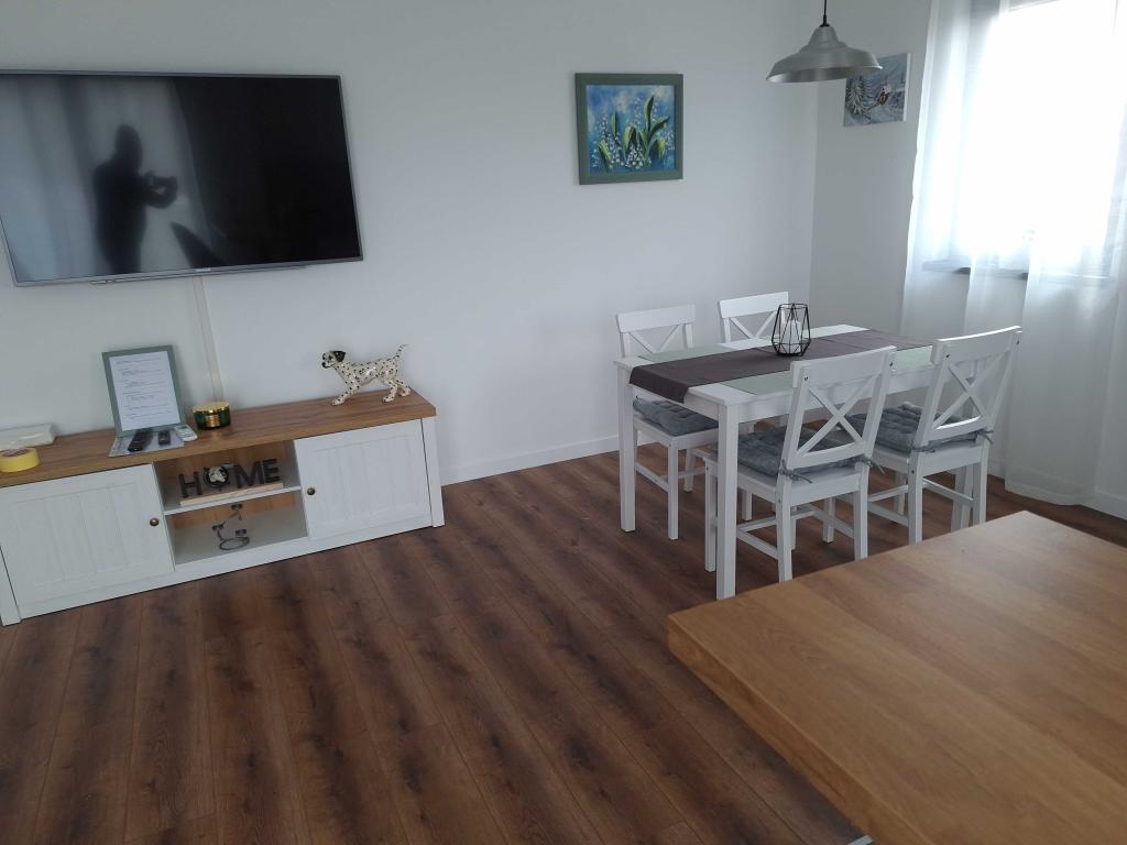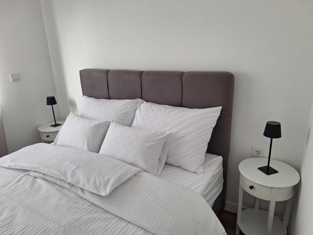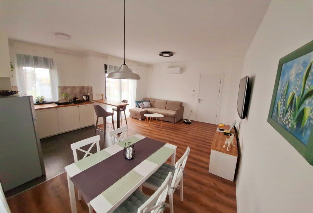 MODERNO 2+2 STANOVANJE ZA NAJEM V ZAGREBU – DNEVNI NAJEM (BANI 76) Oddamo popolnoma opremljeno, moderno 2+2 stanovanje na odlični lokaciji v Zagrebu, v mirni soseski Bani, ulica Bani 76. Stanovanje je idealno za pare, družine ali poslovne potnike, ki si želijo udobja, zasebnosti in dobrih povezav z mestom. Opis stanovanja: Stanovanje je sestavljeno iz udobne spalnice z zakonsko posteljo, moderno opremljene dnevne sobe z raztegljivim kotnim kavčem (2 dodatni ležišči), popolnoma opremljene kuhinje in jedilnice, kopalnice s kadjo ter hodnika in vhodnega prostora. Dnevna soba se odpira na prostoren balkon, idealen za jutranjo kavo ali večerno sprostitev. Udobje: Brezplačen Wi-Fi Klimatska naprava Pametni TV Pralni stroj Popolnoma opremljena kuhinja (hladilnik, pečica, kuhalna plošča, mikrovalovna pečica, grelnik vode) Čiste brisače in posteljnina Sušilnik za lase in osnovni toaletni pribor Parkiranje na voljo pred stavbo