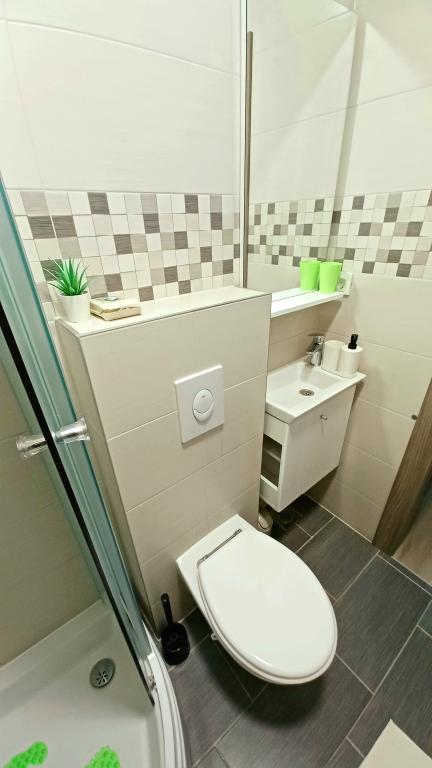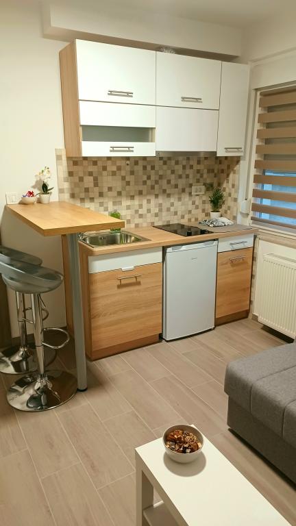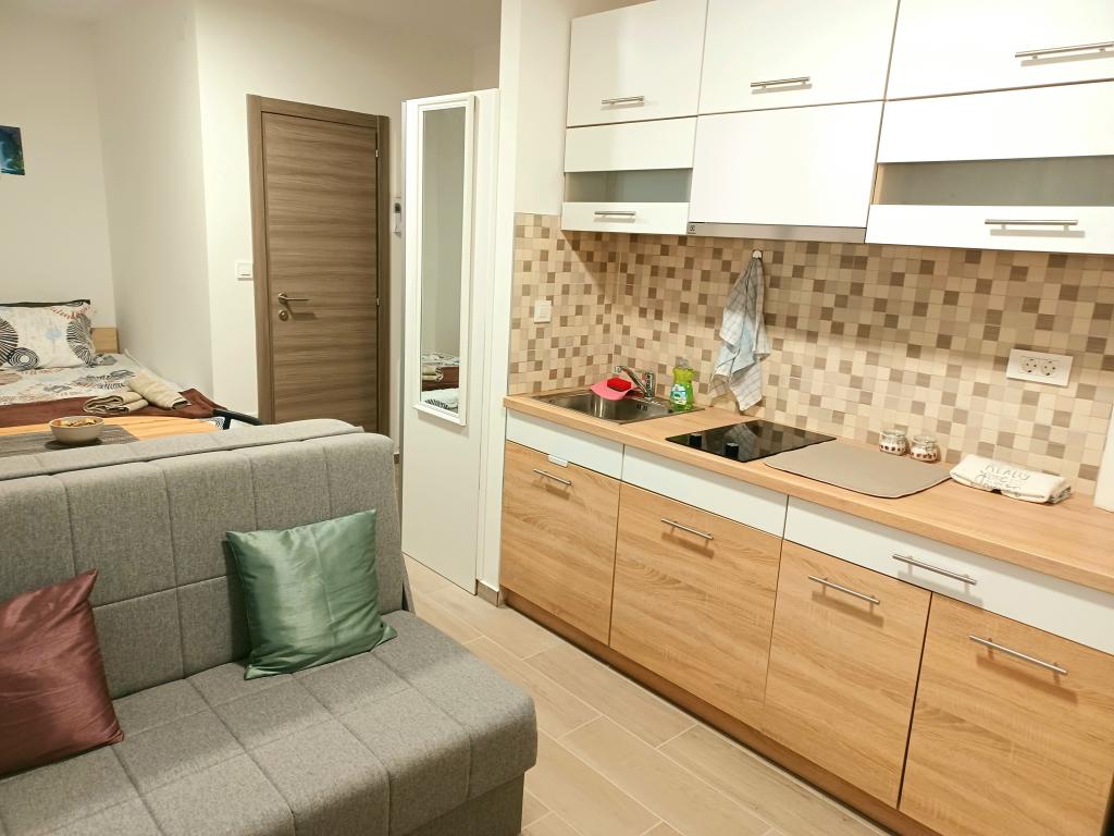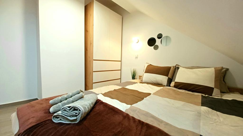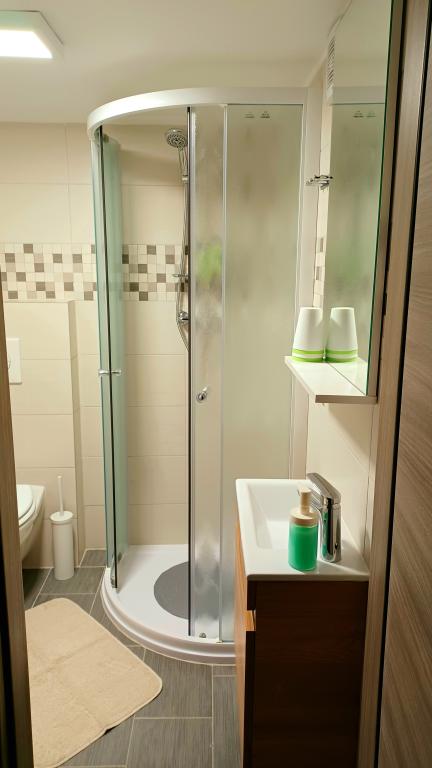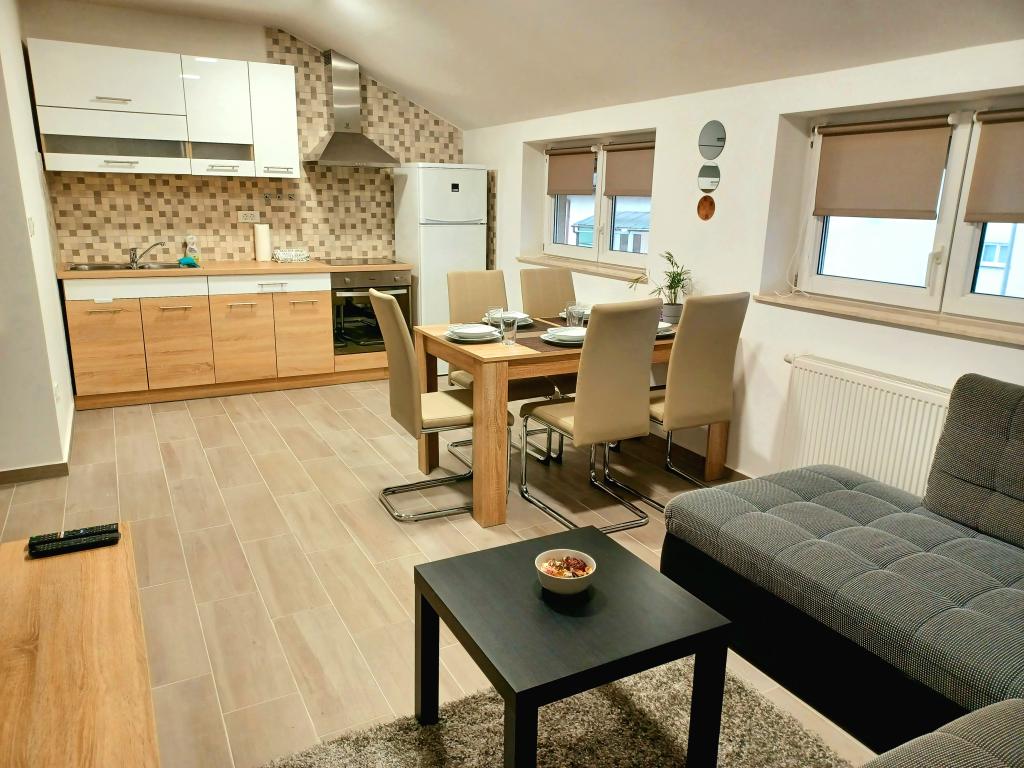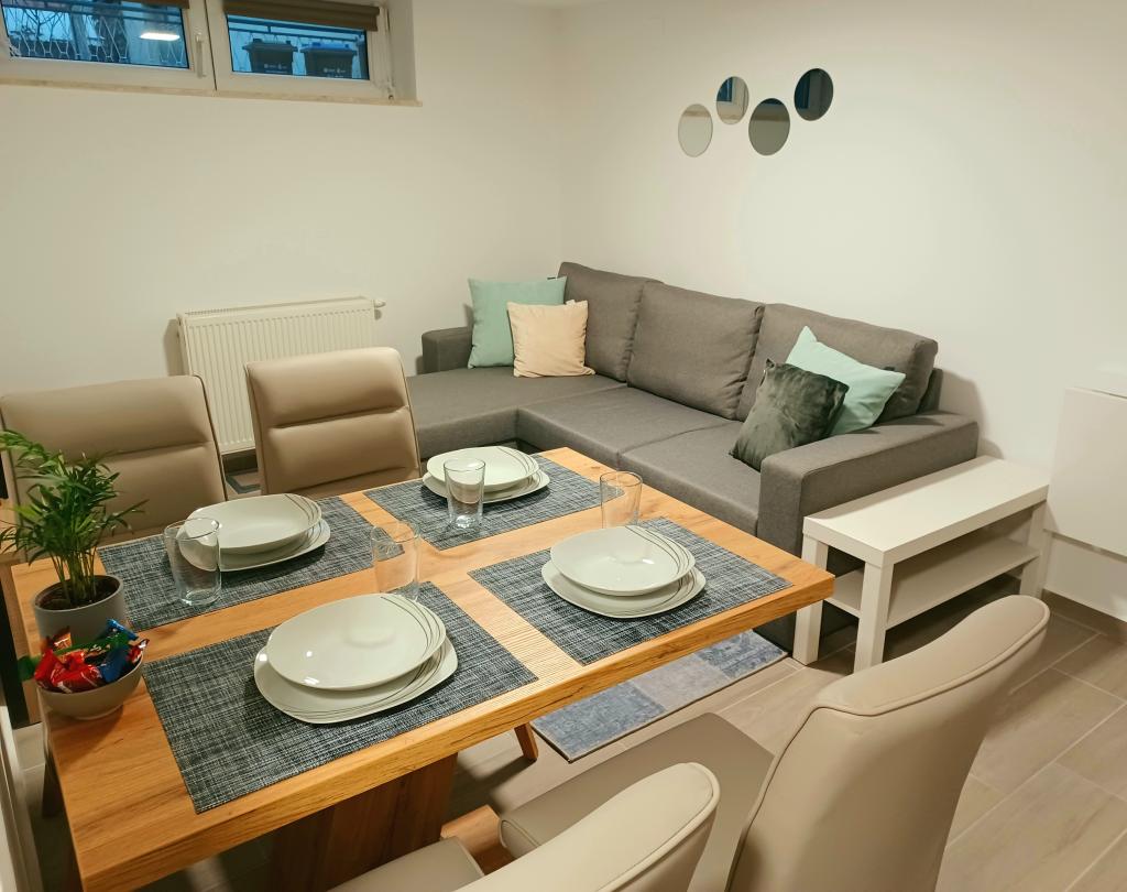Objekt sestavlja 6 namestitvenih enot, ki sprejmejo do 11 oseb. Vsaka namestitvena enota ima svojo kuhinjo in kopalnico. Apartmaji se nahajajo v mirni vasi, v slepi ulici z izhodom za pešce na glavno cesto (50 m). Odlične prometne povezave, bližina restavracij (300 m) in trgovin (100 m). Oddaljenost od centra mesta približno 20 minut vožnje z avtomobilom, kolesom ali javnim prevozom. Odlična lega apartmajev za goste, ki prihajajo zaradi zdravstvenih razlogov zaradi bližine več bolnišnic in klinik.