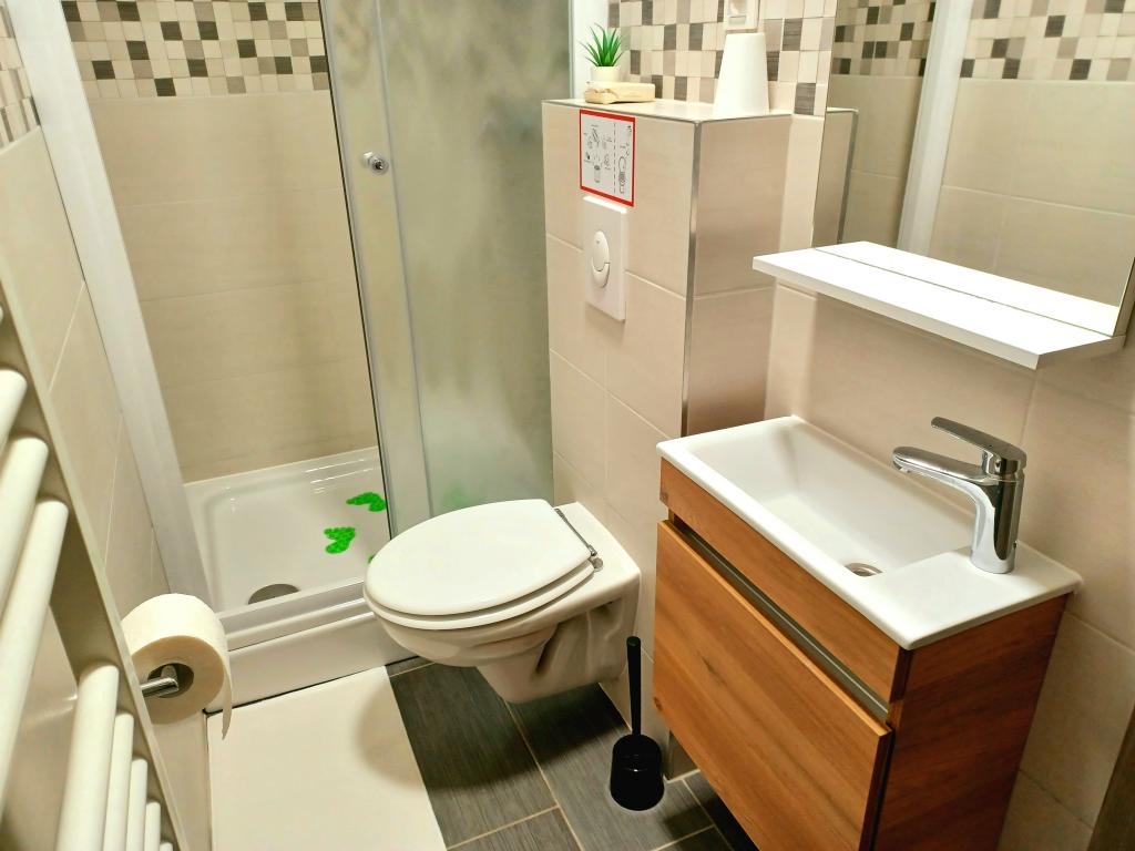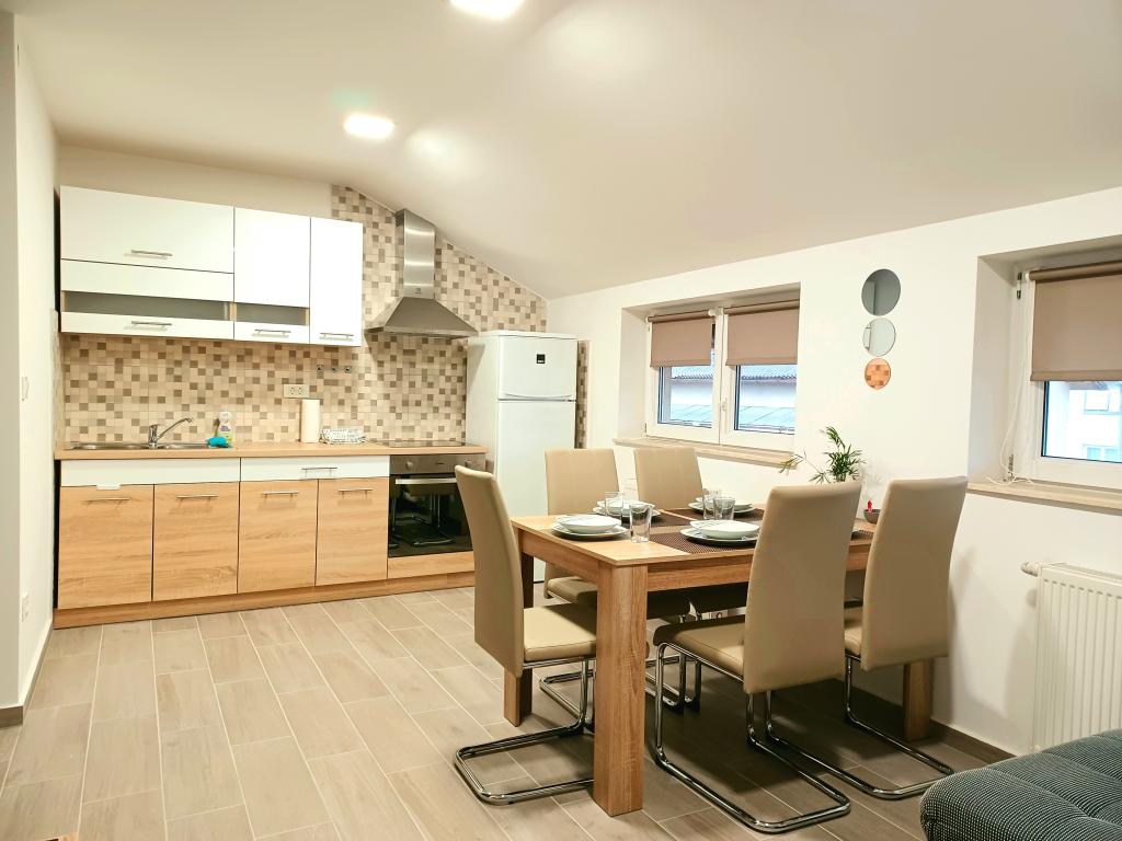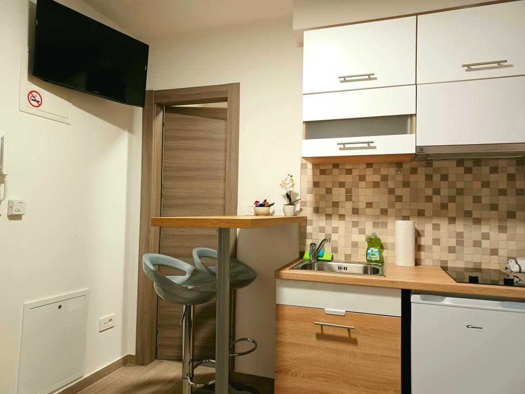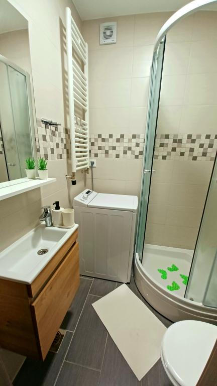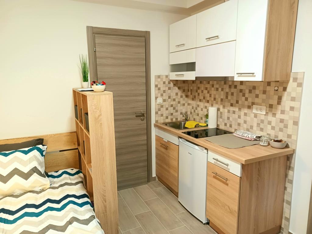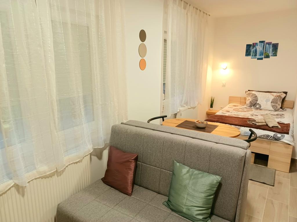 Objekt sestavlja 6 namestitvenih enot, ki sprejmejo do 11 oseb. Vsaka namestitvena enota ima svojo kuhinjo in kopalnico. Apartmaji se nahajajo v mirni vasi, v slepi ulici z izhodom za pešce na glavno cesto (50 m). Odlične prometne povezave, bližina restavracij (300 m) in trgovin (100 m). Oddaljenost od centra mesta približno 20 minut vožnje z avtomobilom, kolesom ali javnim prevozom. Odlična lega apartmajev za goste, ki prihajajo zaradi zdravstvenih razlogov zaradi bližine več bolnišnic in klinik.