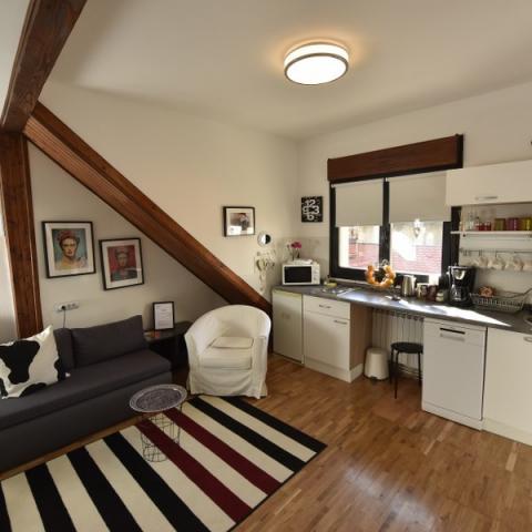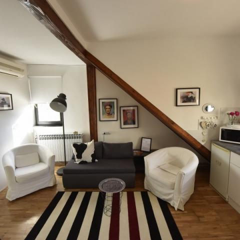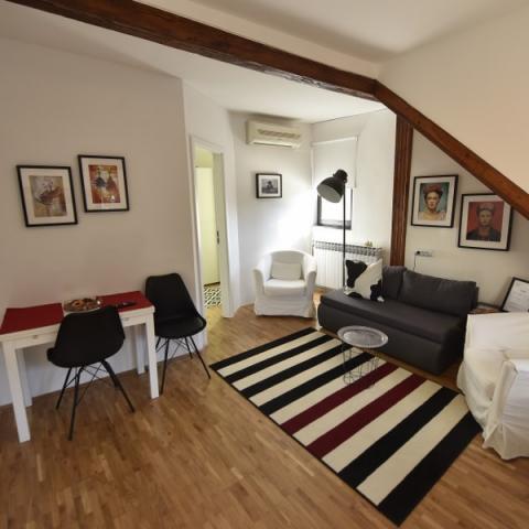 Apartmaji se nahajajo v dvorišču v središču Zagreba na odlični lokaciji. Novo, sodobno in popolnoma opremljeno. Apartmaji imajo ločeno spalnico z zakonsko posteljo 140x200 in raztegljivo posteljo za 2 osebi v dnevni sobi. Imajo popolnoma opremljeno kuhinjo (hladilnik, kuhalna plošča, pomivalni stroj, mikrovalovna pečica, toaster, kotel, aparat za kavo, sol, kava, čaj, ...), jedilnica, dnevna soba in kopalnica z brisačami in sušilec za lase. Eden od apartmajev ima pralni stroj. Vsak apartma ima LED satelitsko televizijo, brez WIFI, centralno ogrevanje. klimatska naprava, železo ... Nahajajo se drug drugemu, zaradi česar so idealni za najem družin z velikim številom članov in tako naprej. V neposredni bližini je večina kulturnih spomenikov in znamenitosti mesta Zagreb. Blizu železniške in avtobusne postaje. HNK oddaljeno 250 m, trg Jelačić 600 m, botanični vrt 250 m, zgornje mesto 300 m ... Bizina trgovina 50 m.