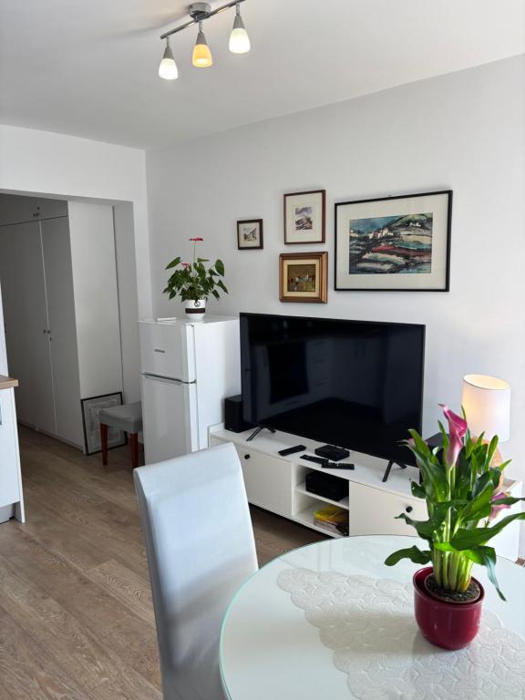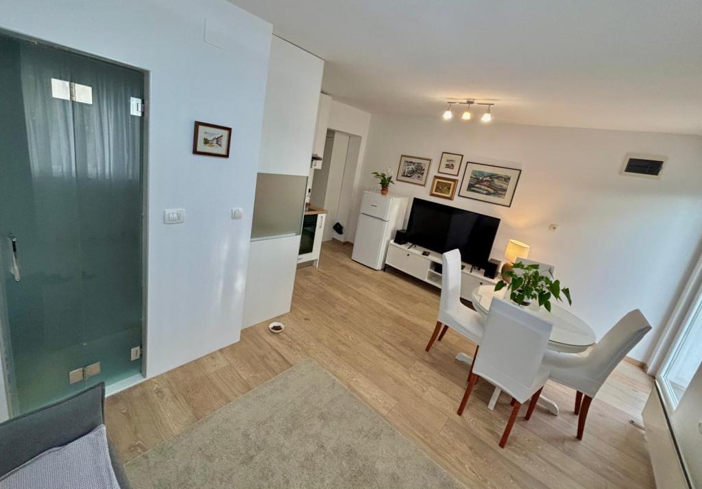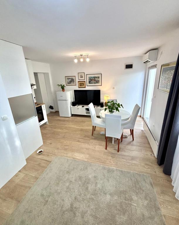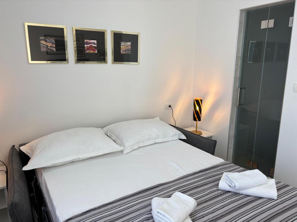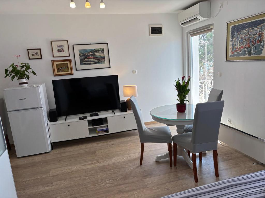 Studio apartma je popolnoma in moderno opremljen v prvem nadstropju družinske hiše, ki je oddaljena 30 m od morja in čudovite prodnate plaže s postopnim vhodom v morje. Pred hišo je parkirišče za avto, na dvorišču pa je paviljon z žarom in mizami za bivanje v senci. V bližini so trgovine, restavracije, slaščičarna, na vhodu v mesto pa je nakupovalni center Plodine.