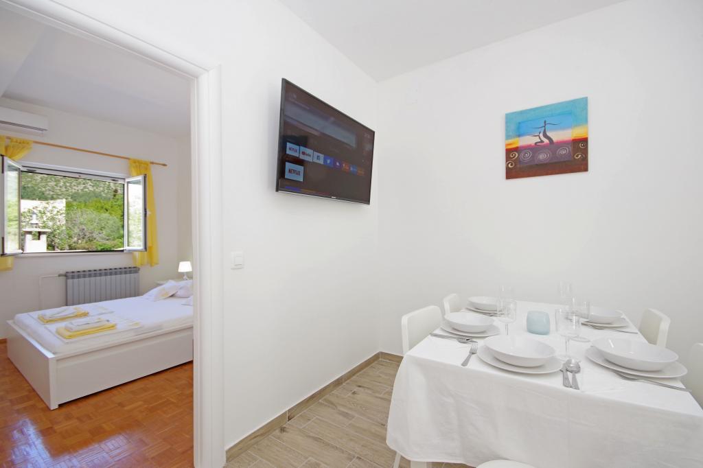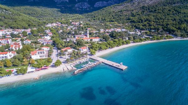 Popolnoma opremljeni apartmaji v mirnem predelu Zaostroga. Apartmaji imajo pogled na morje in se nahajajo 3 minute hoje od plaže in 5 minut hoje od centra. Objekt ima lastno veliko parkirišče.
