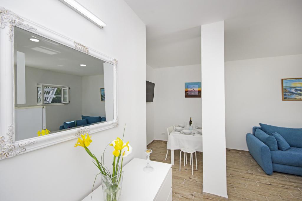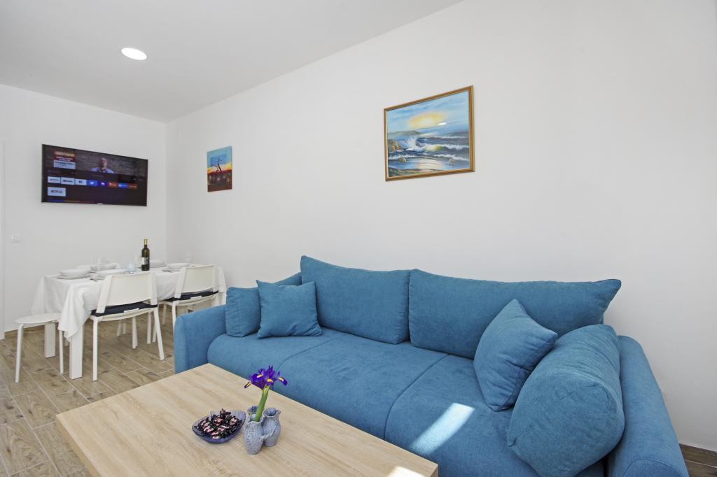 Apartma z dvema spalnicama in dvema terasama - kot je opisano. Čisto, udobno, lepo opremljeno in opremljeno z vsem, kar potrebujete za dober počitek. Zagotovljeno parkirno mesto. Hiša se nahaja v mirnem okolju, vendar blizu plaže, trgovin in restavracij. Gordana in njena družina so čudoviti in ustrežljivi gostitelji, ki so poskrbeli, da nismo nič zamudili. Hvala predvsem za fige in sladkarije. Lep pozdrav Monika z družino