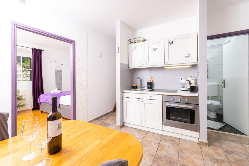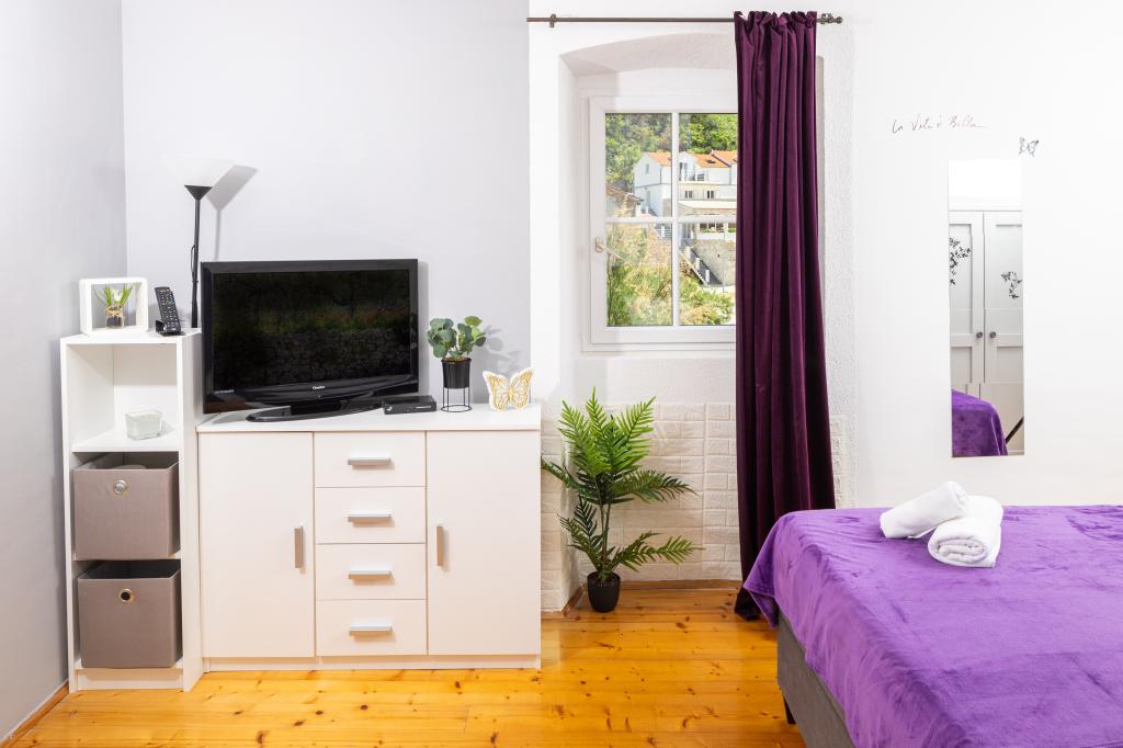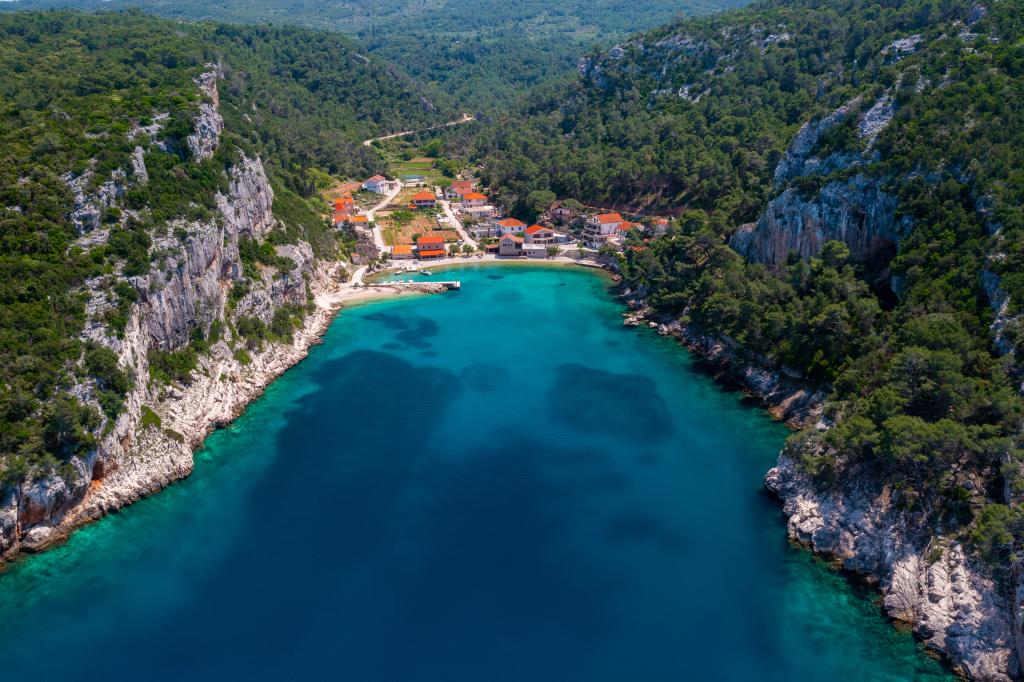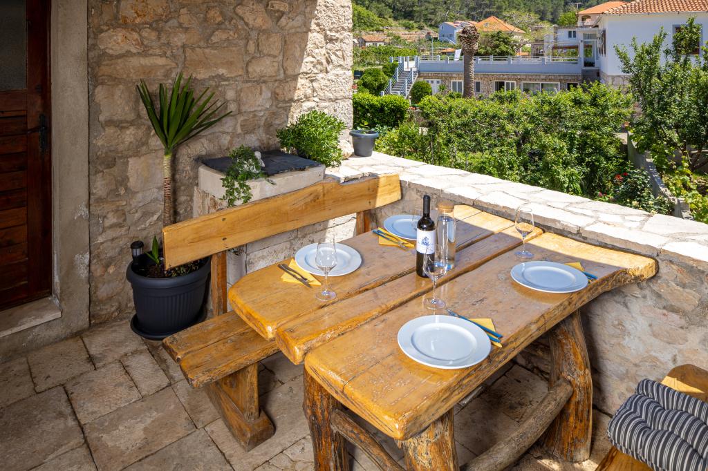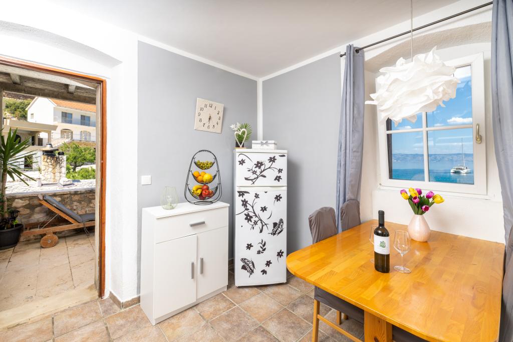 Popolnoma opremljen apartma v mirnem zalivu na severni strani otoka Hvar. Apartma vsebuje sobe z zakonskimi posteljami, kuhinjo, opremljeno z vsemi potrebnimi aparati in pripomočki, kopalnico s tušem, teraso s čudovitim pogledom na morje. Brisače in posteljnina so vključeni v ceno. Plaža se nahaja ob apartmaju in je izjemno primerna za otroke. V zalivu Vela Stiniva boste uživali v kristalno čistem morju, vonju borovega gozda in soncu, ki je v poletnih mesecih ves dan. Zaliv Vela Stiniva je oddaljen 20 km. V zalivu je eno od dveh plezališč na otoku Hvar. Hiša, v kateri se nahaja apartma, se nahaja tik ob morju in restavracija, kjer lahko uživate v dalmatinski hrani in lokalnem vinu.