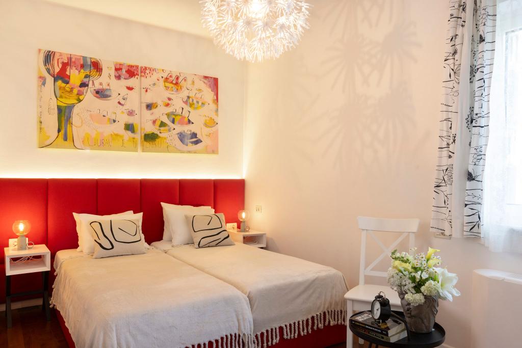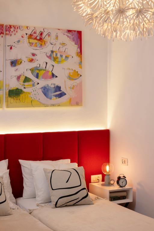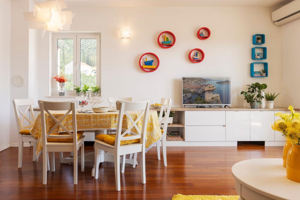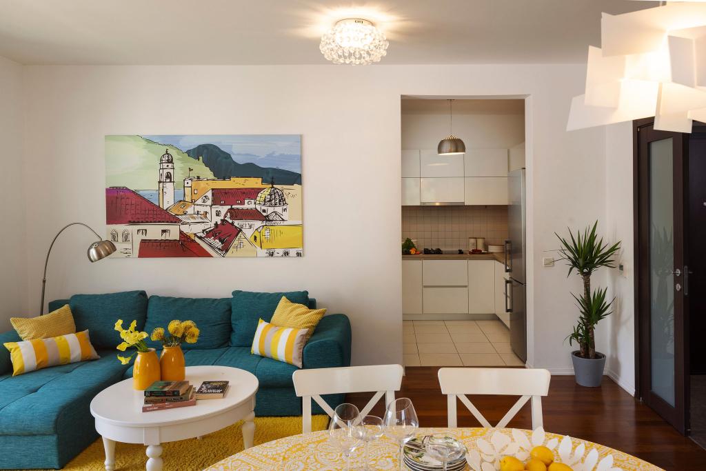 • Moderno zasnovan apartma velikosti 75 m2 s prostorno dnevno sobo z veliko teraso, kjer lahko uživate v razgledu • Apartma ima: brezplačen wifi in parkirišče, SAT TV, jedilno mizo za 6 oseb, 2 spalnici, kopalnico s kadjo in pralnim strojem ter dodatno stranišče, popolnoma opremljena kuhinja (pomivalni stroj, mikrovalovna pečica...) • Apartma Bellevue v Zalivu Zaton je idealen kraj za tiste, ki želijo prijazno vzdušje, mir in tišino s čudovitim pogledom na Jadransko morje • Apartma je za 4 +2 osebi