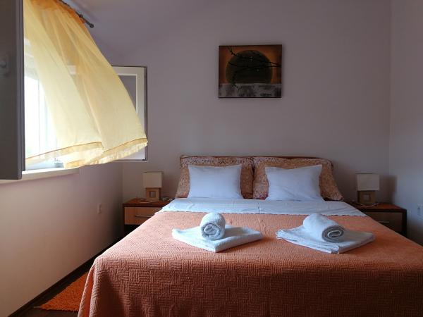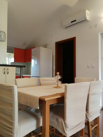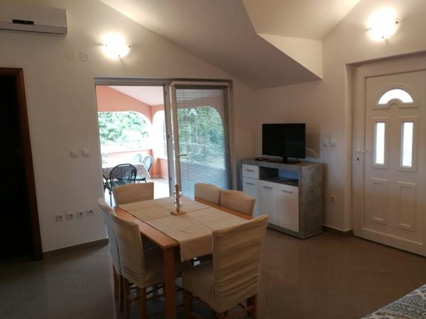 Odličen apartma s tremi spalnicami, urejen, čist, zračen, z odlično opremo v kuhinji (pomivalni stroj)..., na dvorišču žar, mirno okolje, blizu morja, krasno, čisto morje, prijazni, ljubeznivi lastniki. Primerno za družine z malimi otroki in odrasle, ki imajo radi mir.