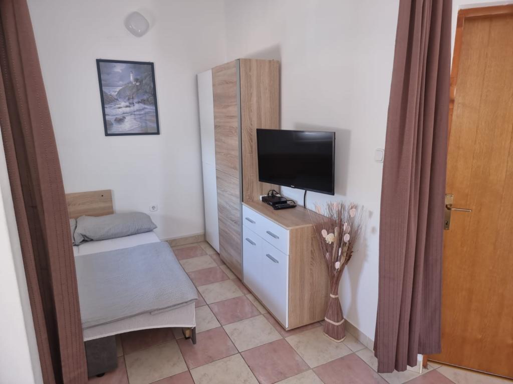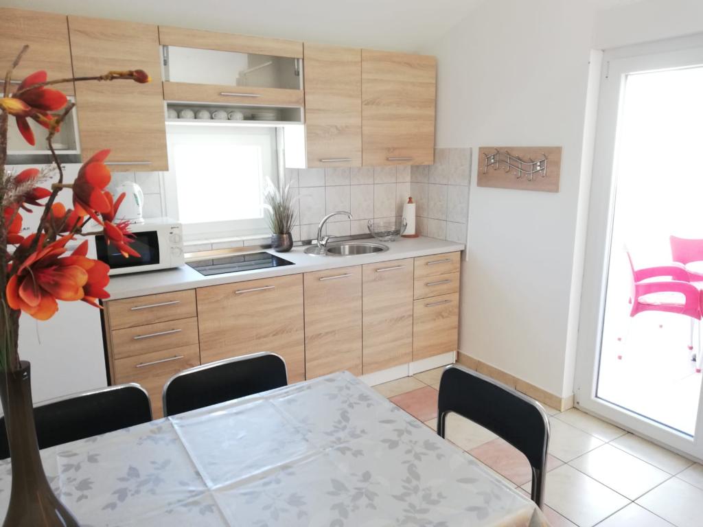 Popolnoma opremljen apartma se nahaja v čudovitem mestu Zaton (Nin), ki je obkroženo z eno najlepših plaž na Hrvaškem. Stanovanje obsega: kuhinjo in dnevno sobo, kopalnico s tuš kabino in pralnim strojem, hodnik, teraso, 1 spalnico in 1 pregradno sobo s paravanom. Parkirni prostor zagotovljen in viden z balkona stanovanja. Možna uporaba žara na dvorišču.